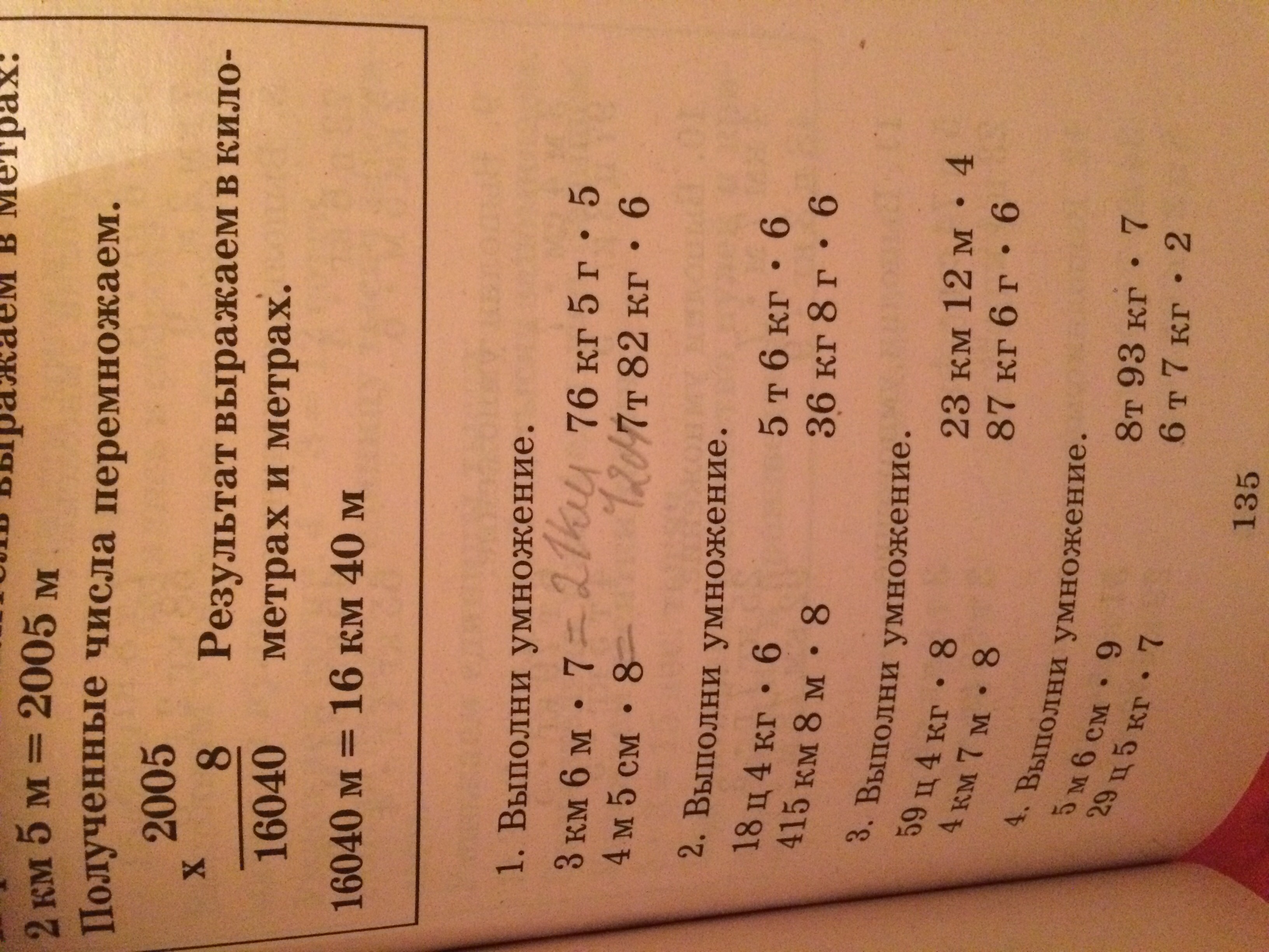 36км×7=25км2м. 4м5см×8=36м0см. 76кг5г=382км5г. 7т82км ×6=46т92кг. номер 2. 18ц4кг. ×6=110ц4кг. 415км8м×8=3326км4м. 5т 6 кг ×6=36т6кг. 36кг8г ×6=220кг 8г