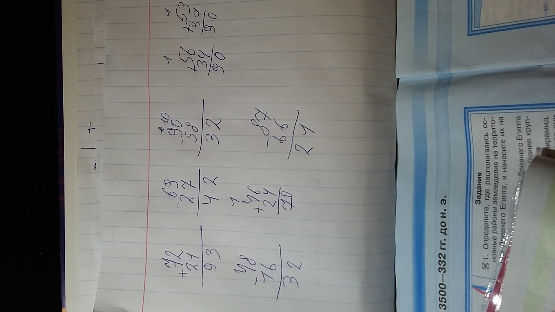 Запишите примеры столбиком и выполните действия 72+21 ,69-27, 90-58,56+34,53+37,48-16,46+24,87-66, пожалуйста помогите столбиком это как и действия как