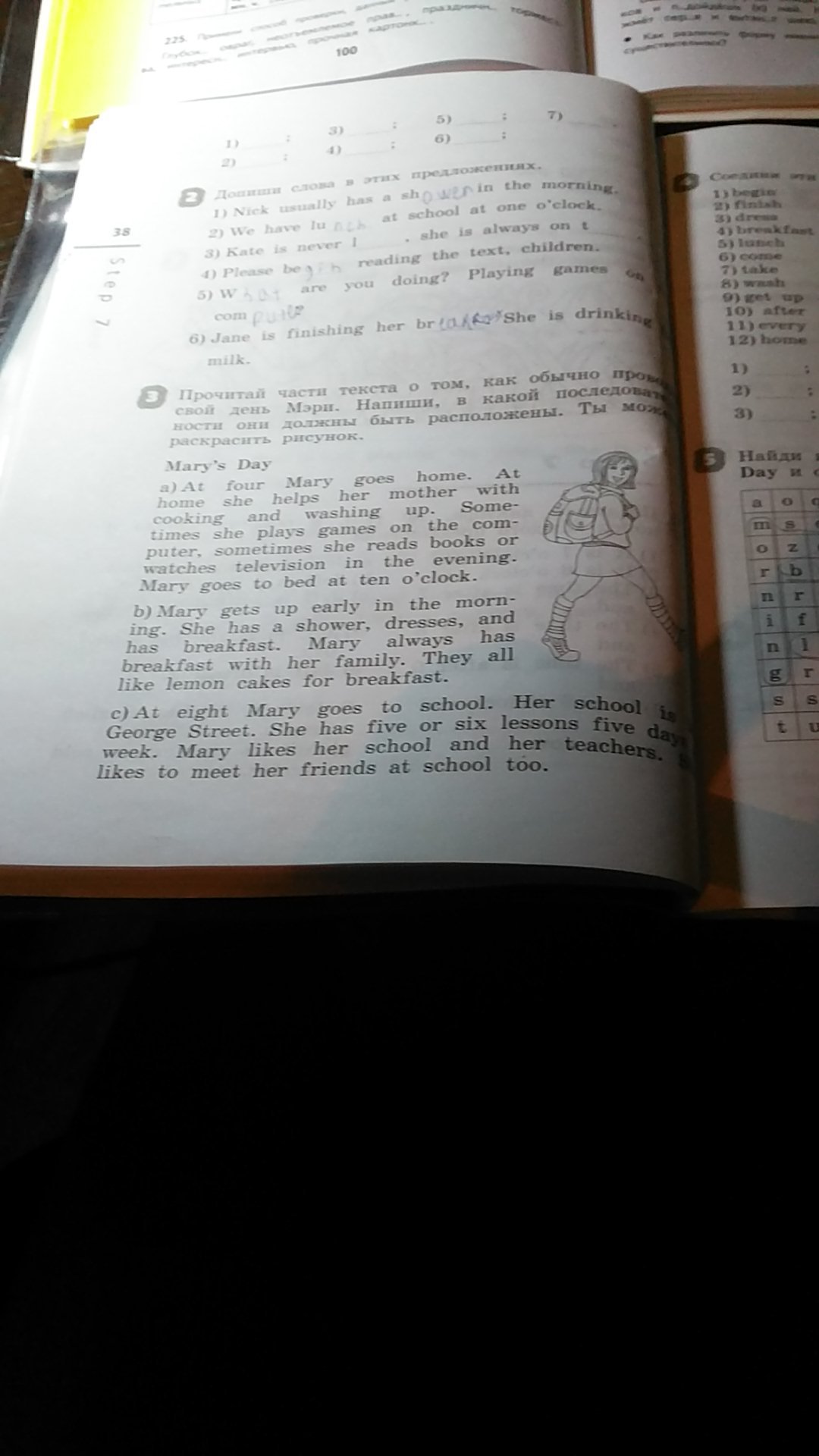 прочитай части текста о том как обычно проводит свой день мери. напиши последовательности они должны быть расположены