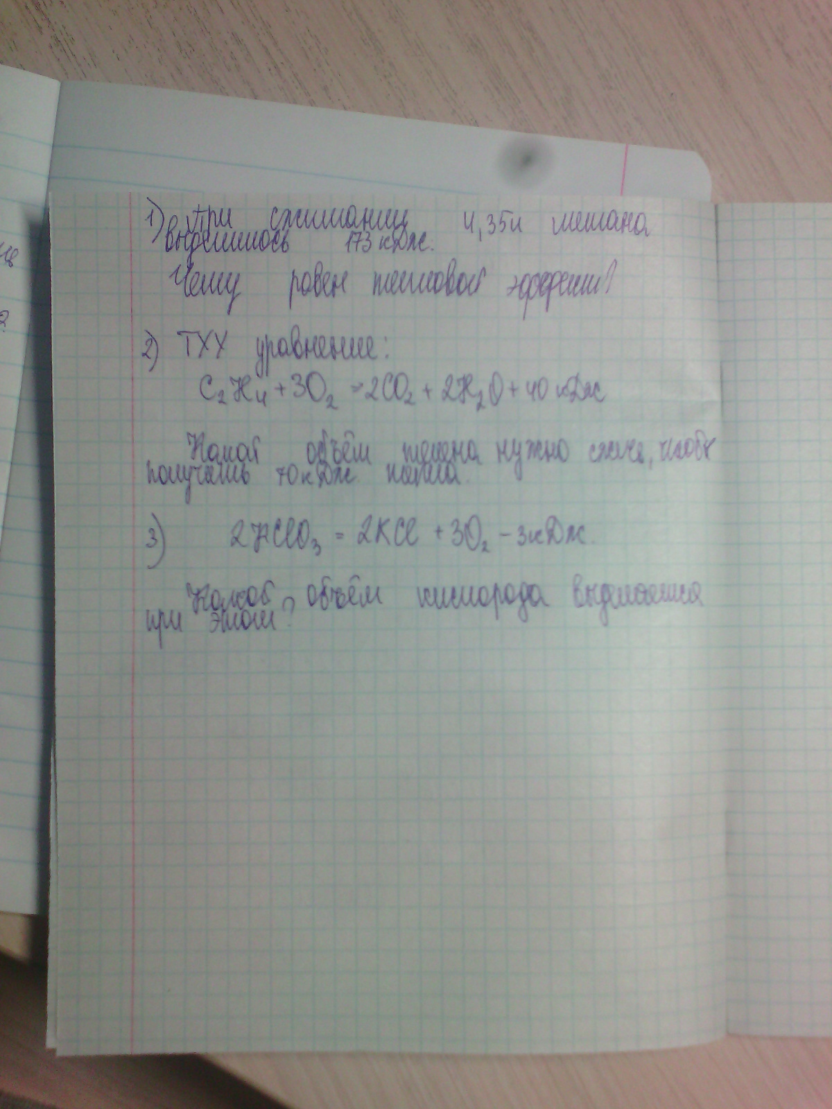 1). при сжигании 4,35л метана выделилось 173 килоджоули. Чему равен Тепловой эффект?