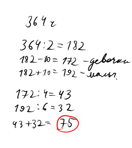 В оздоровительном лагере 364 человека .Мальчиков на 20 больше ,чем девочек.Девочек разместили в комнаты по 4 человека, а мальчиков по 6 человек.Сколько комнат потребовалось, чтобы разместить всех детей?