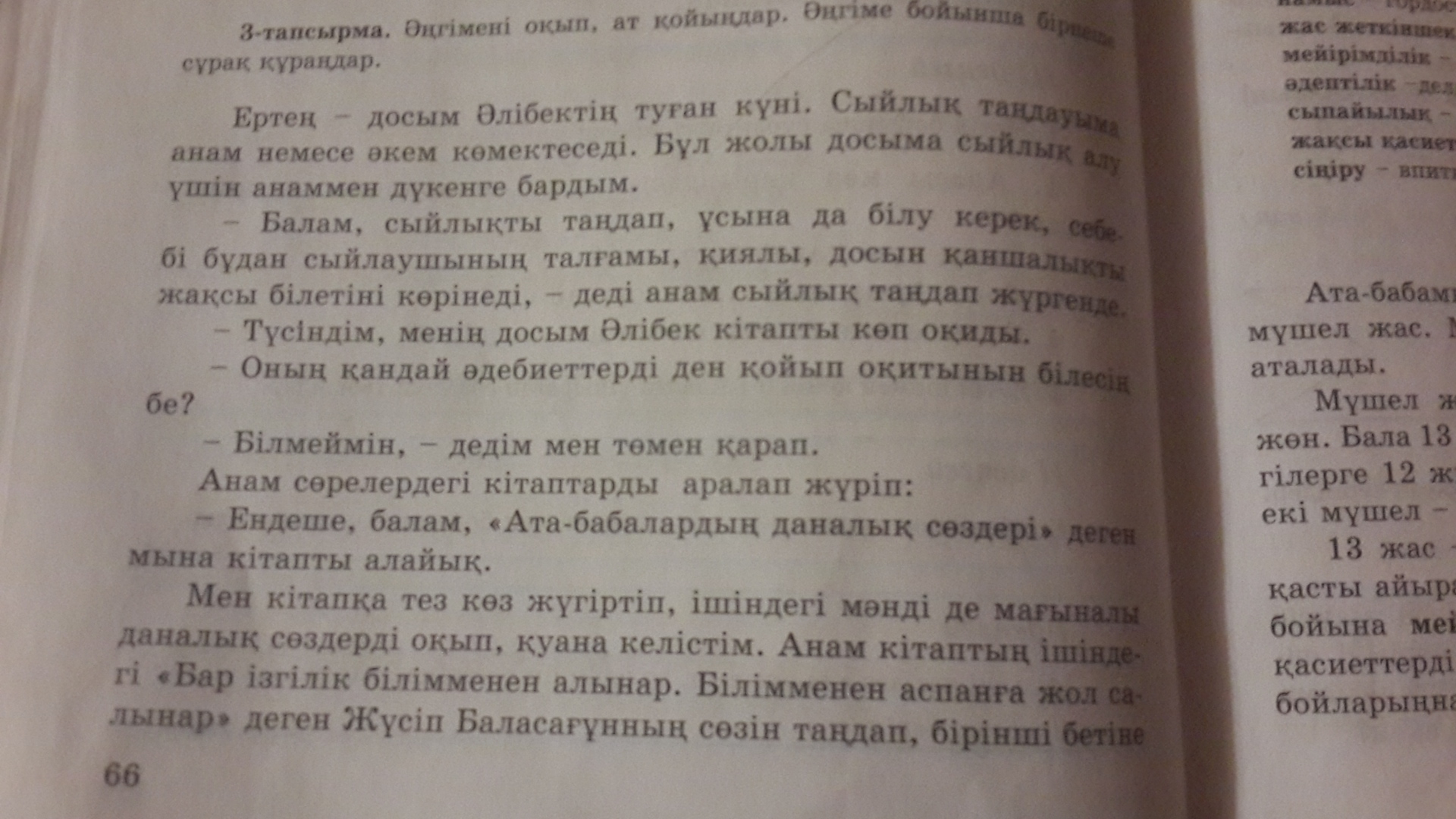 кітап сатып аларда ең бірінші неге көңіл бөлу керек? Əлібек қандай бала еді, анамы оған қандай ақыл айтты ?