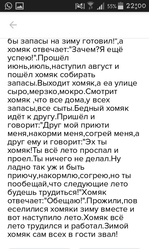 -не үшін, мен кейін де үлгеремін деді. Маусым, шілде, тамыз айлары өтті. Тышқан азық іздеуге шықты. бірақ дала суық, ылғалды жауын шашын көп болды. басқаларға қараса бəрі тоқ, азығы бар. байқұс тышқан досына келеді. ол одан тамақтандыруын, үйге кіргізуін сұрайды. ал досы''ех, достым. жаз бойы ұйықтадың. еңбек істемедің. жарайды, айтқаның болсын. бірақ жазда дұрыстап еңбектен.'' деп жауап берді. тышқан уəде берді. ол жаздай еңбектеніп, барлық достарын қонаққа шақырды.