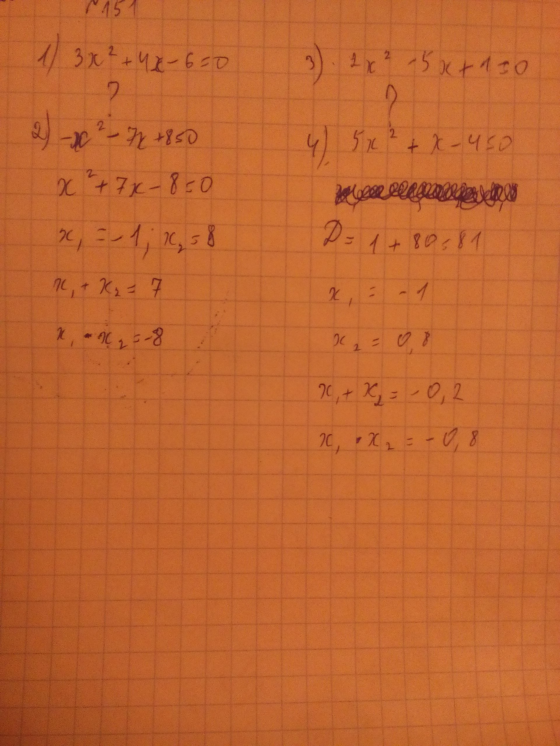 151. Найдите сумму и произведение корней каждого из данных уравнений :