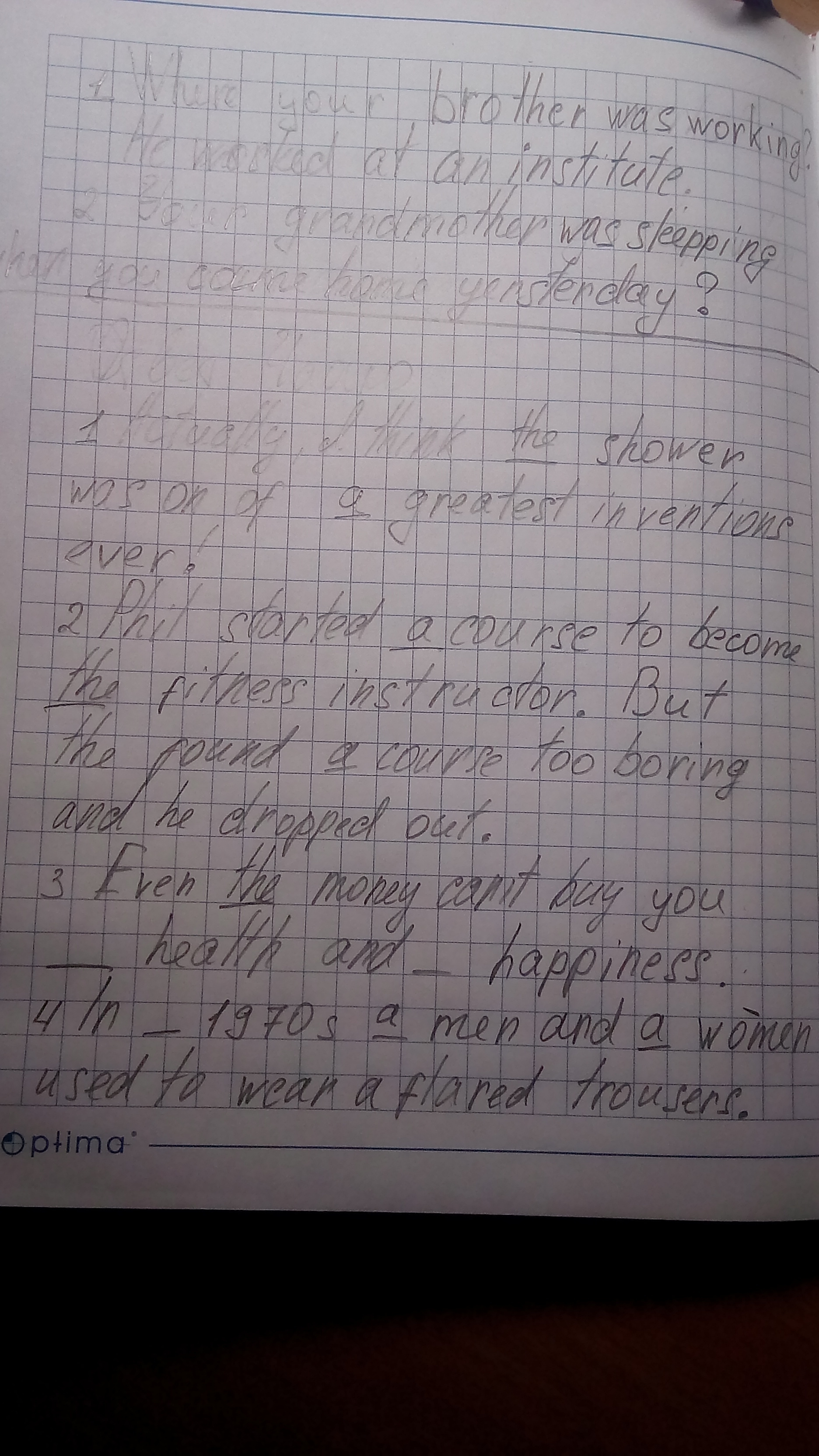 2. Phil started __ course to become __ fitness instructor. But the found __ course too boring and he dropped out.