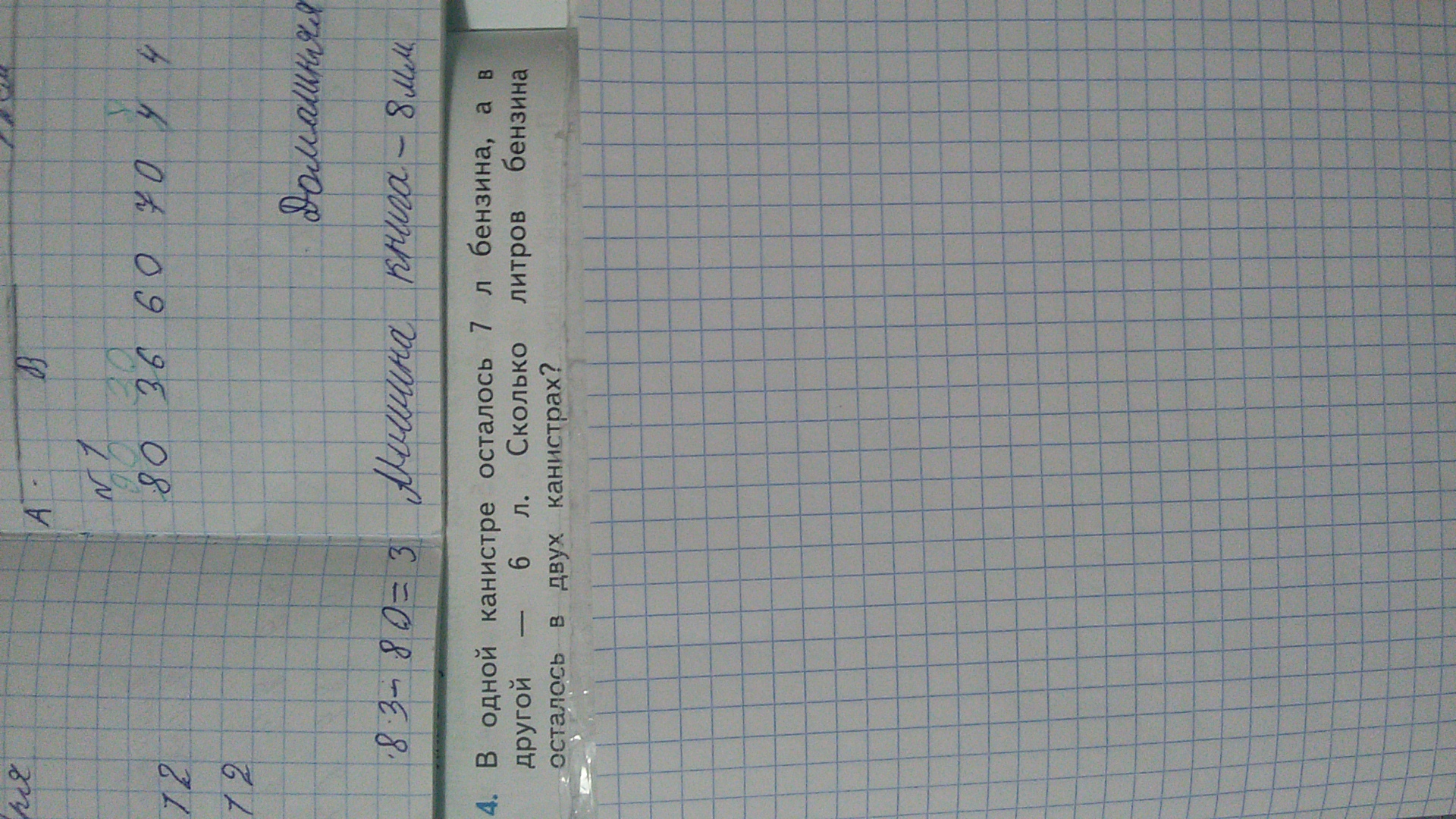 В одной канистре осталось 7л бензина ,а в другой 6л.Сколько литров бензина осталось в двух канистрах.напишите как правильно написать полностью