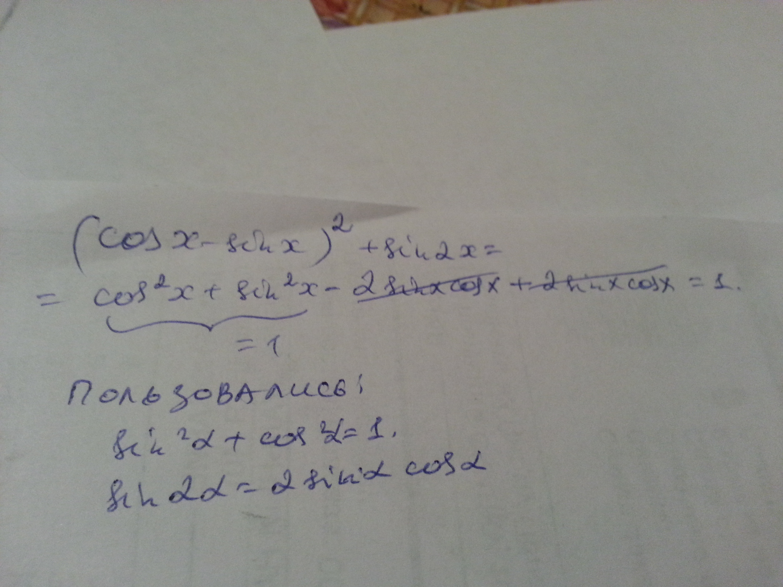 cos^2x-2cosxsinx+sin^2x+sin2x=1-sin2x+sin2x=1