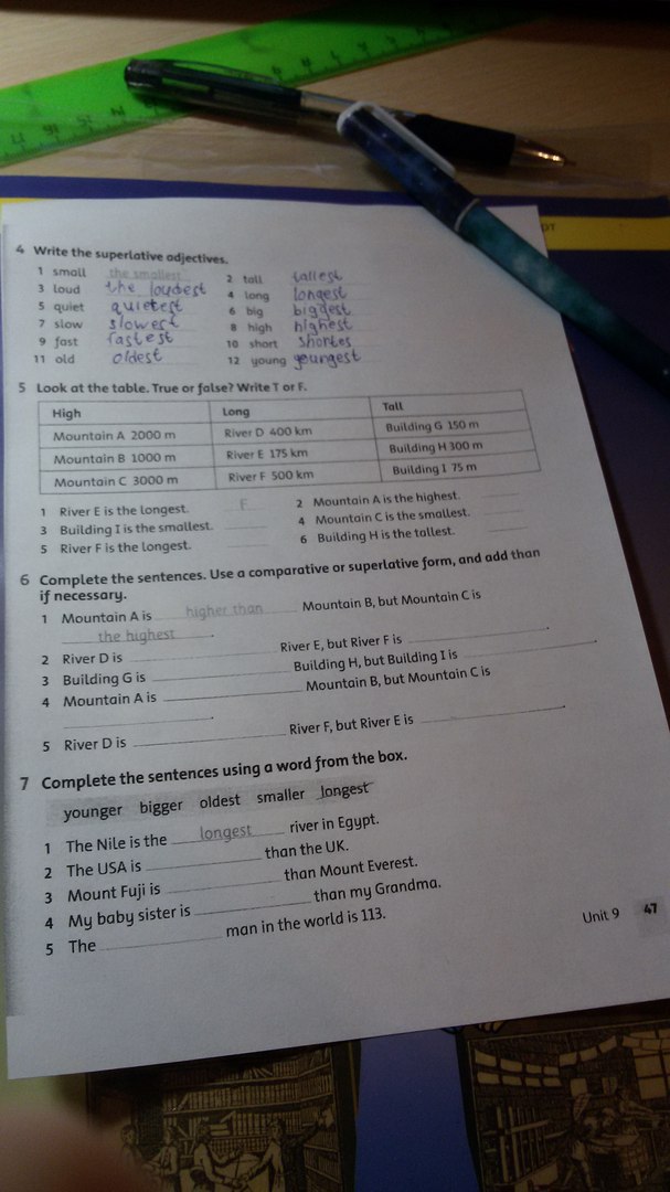 2 – longer than, longest, 3 – smaller than, smallest, 4 – higher than, highest, 5 – shorter than, shortest