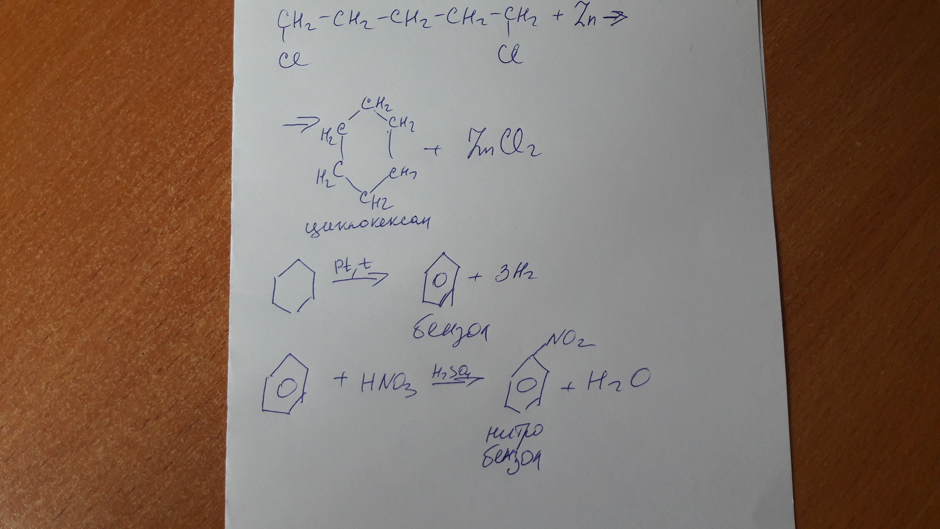 С6Н12Сl2 + Zn = ZnCl2 +C6H12 (циклогексан)