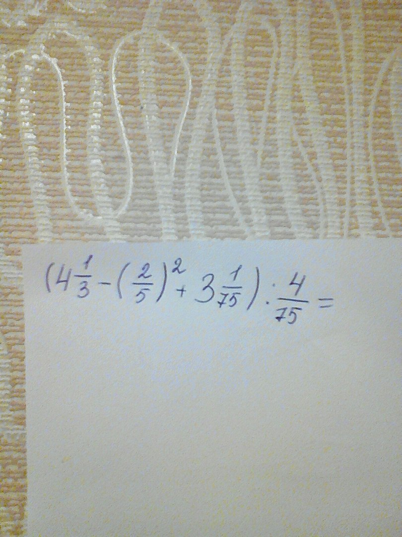 (4 1/3 - (2/5)²+3 1/75):4/75=(4 1/3 - 4/25+ 3 1/75): 4/75= (4 25/75 - 12/75 + 3 1/75):4/75=7 14/75 : 4/75= 314/75 × 75/4= 314/4= 157/2=78.5