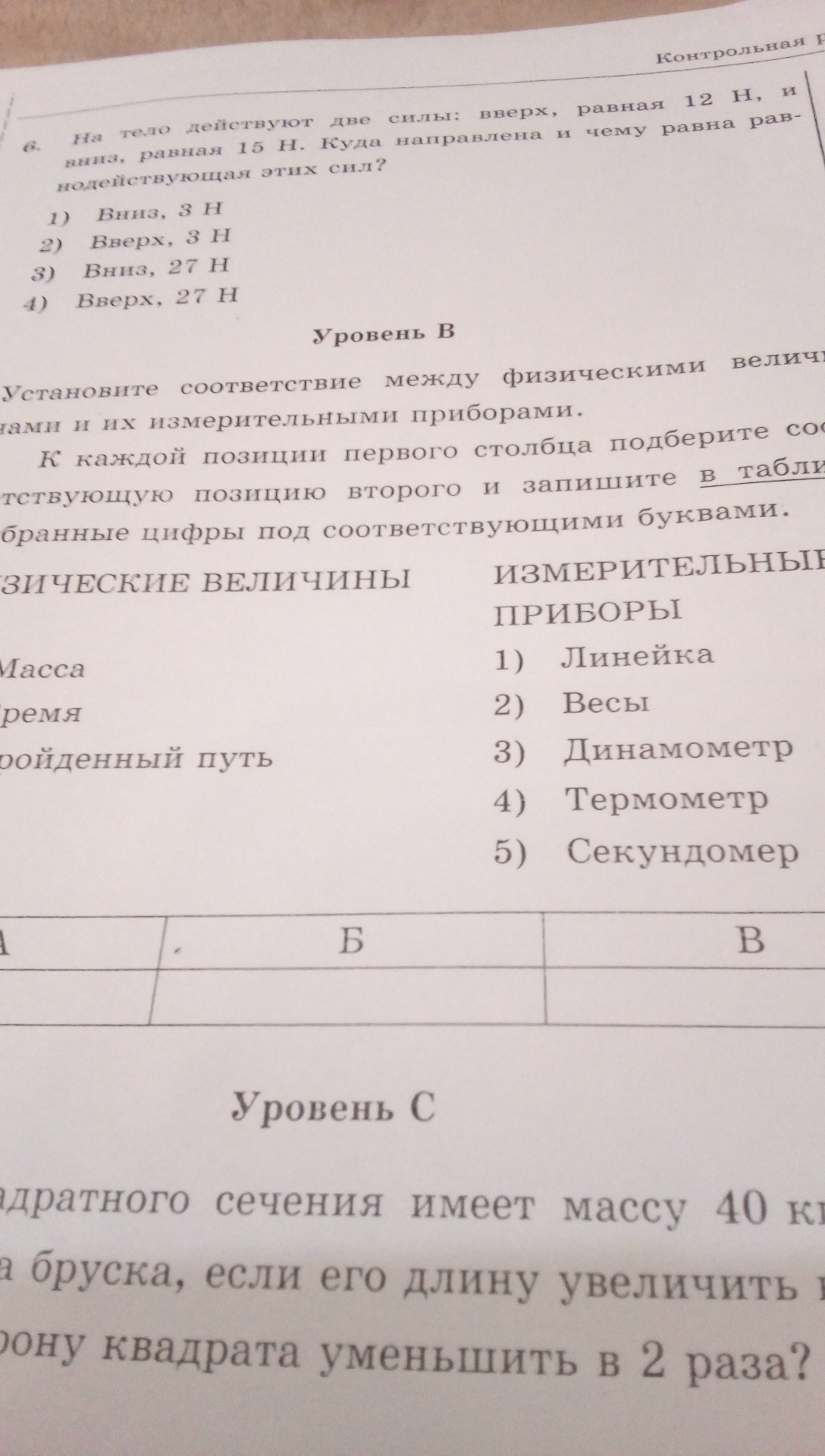 7. Установите соответствие между физическими величинами и их измерительными приборами.