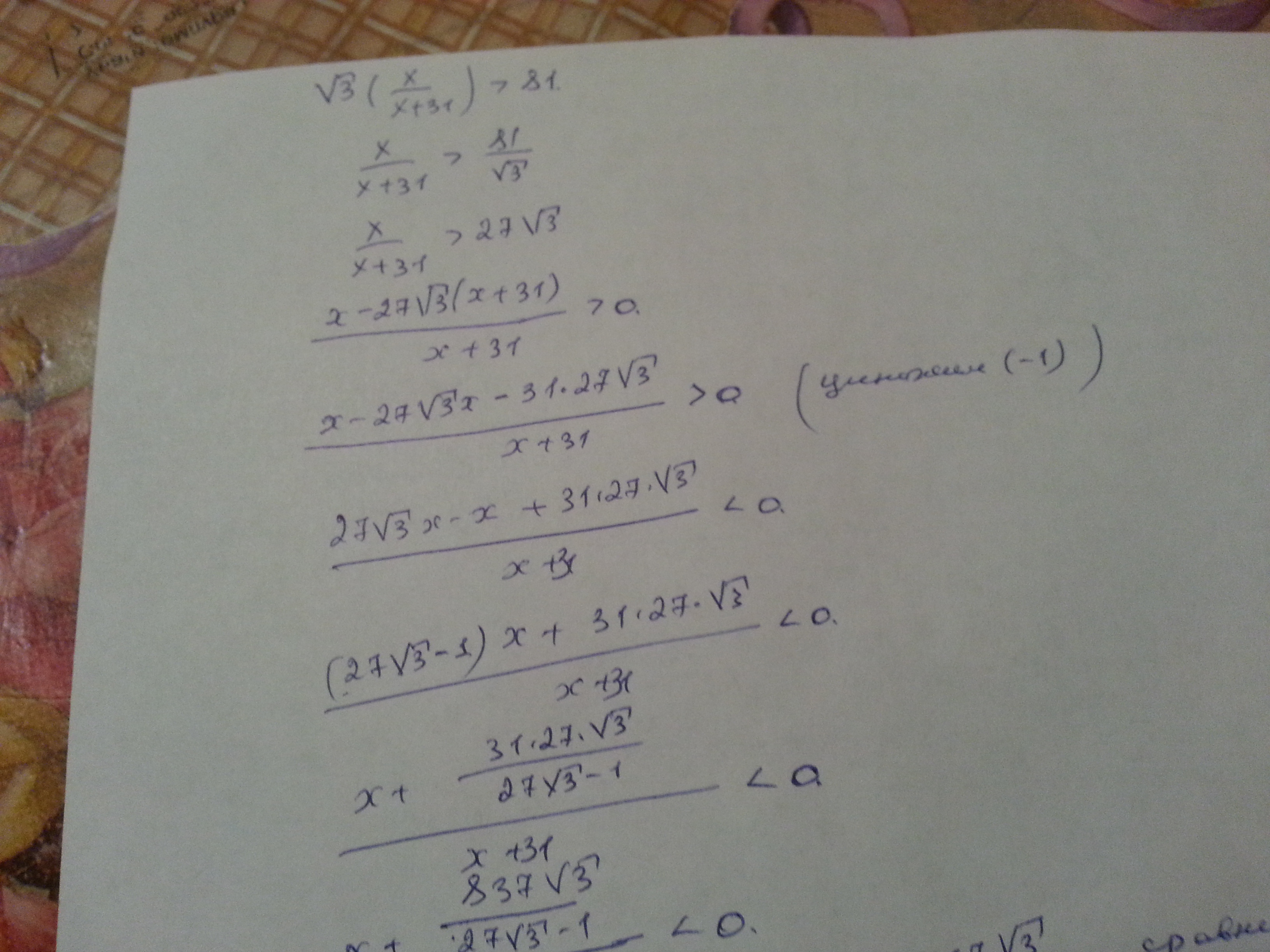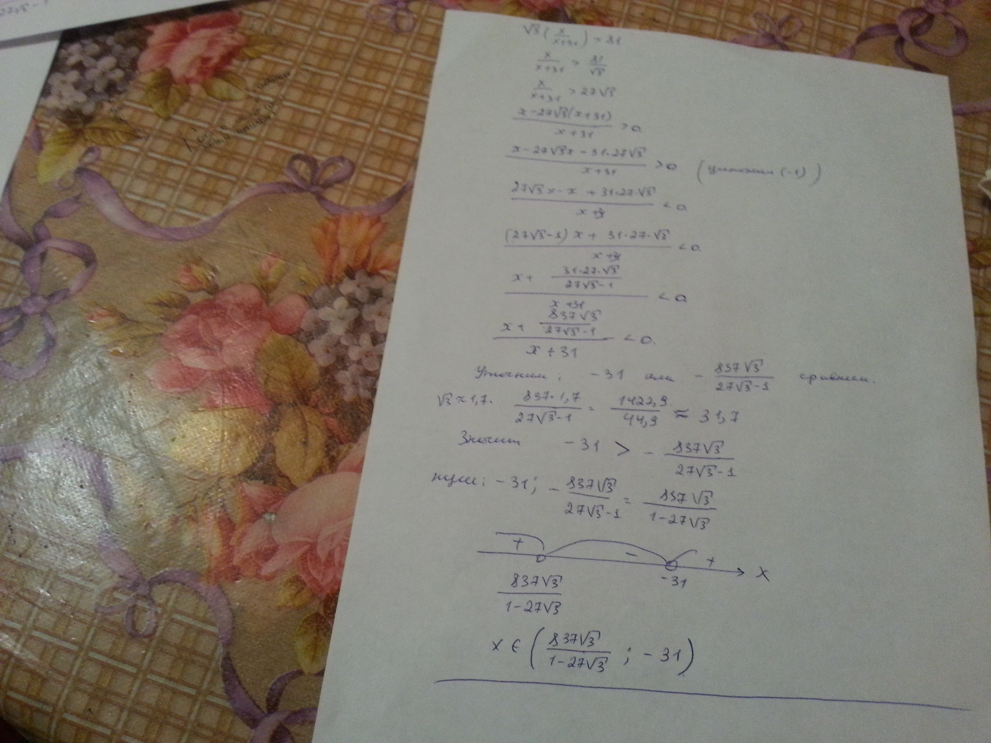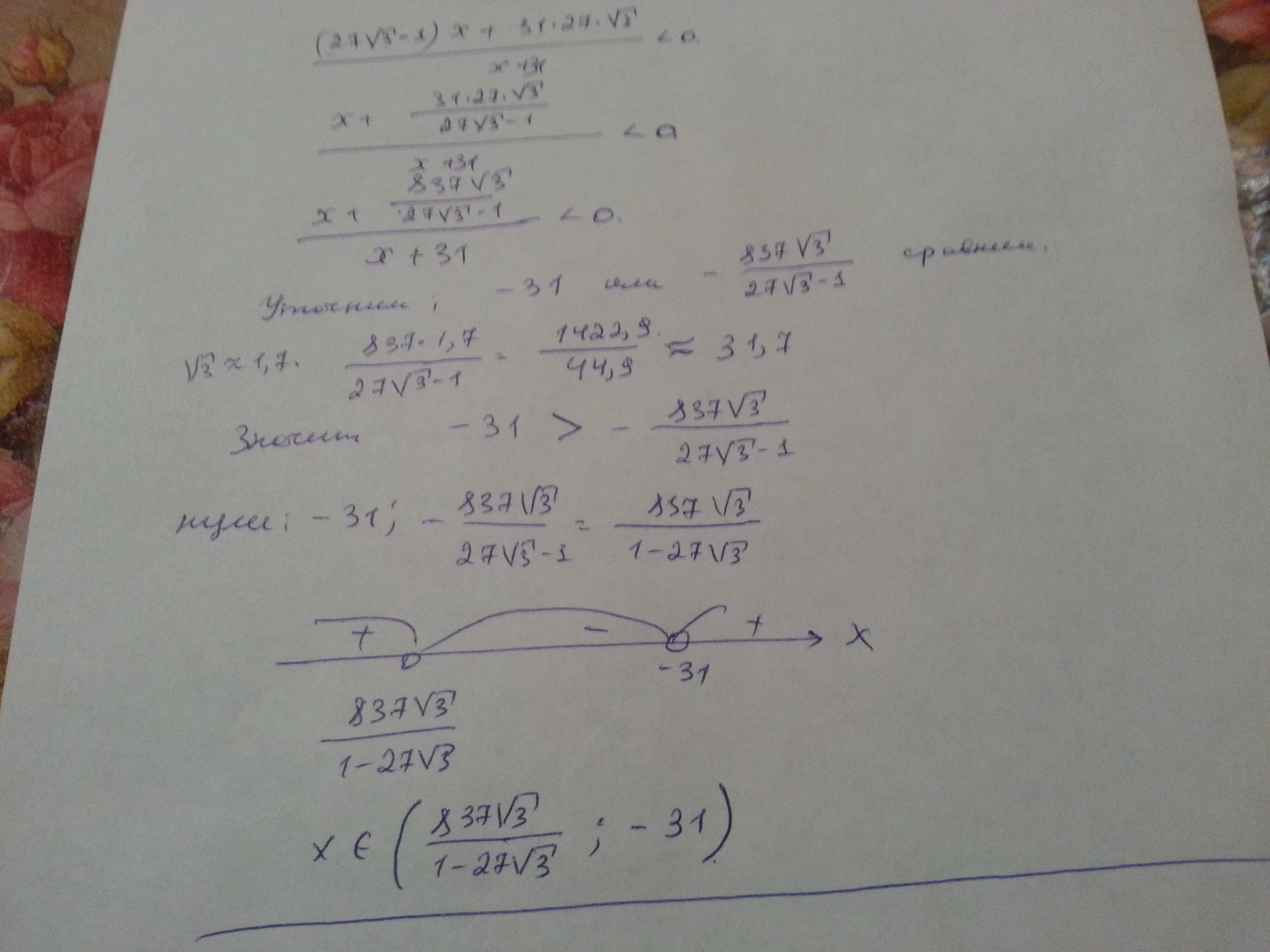 Ответ : -837*sqrt(3)/(27*sqrt(3))-1) <x<-31