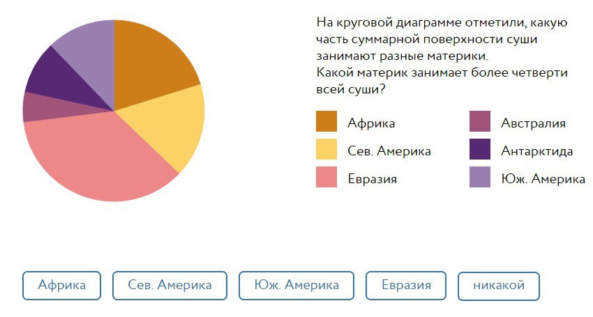 Евразия, т. к. на диаграмме она занимает больше, чем 1/4