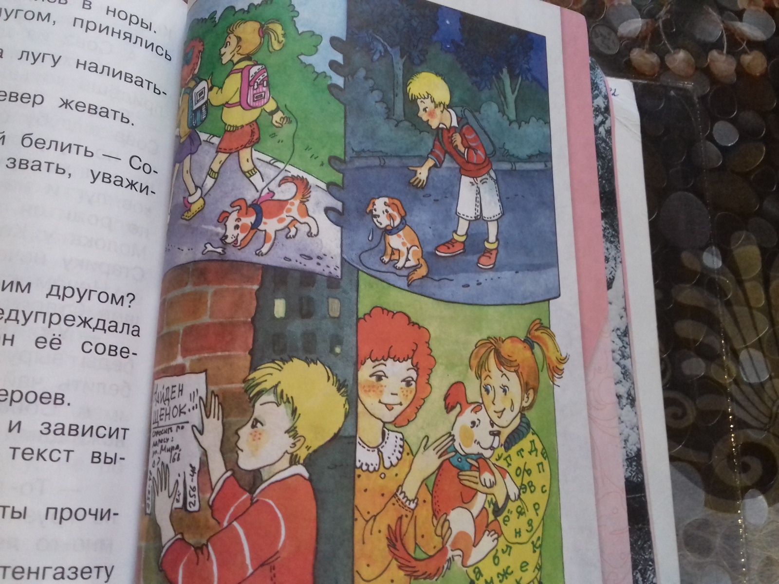 Поговорила девочка с мамой и пошла домой. Идет, идет и Шарик отстал от неё. Шла Нина не заметив этого. Пришла она домой заметила, что хвостом за ней никто не бежит и заплакала. Вдруг стук в дверь. На пороге стоял мальчик с Шариком. Отдал мальчик Нине её песика.