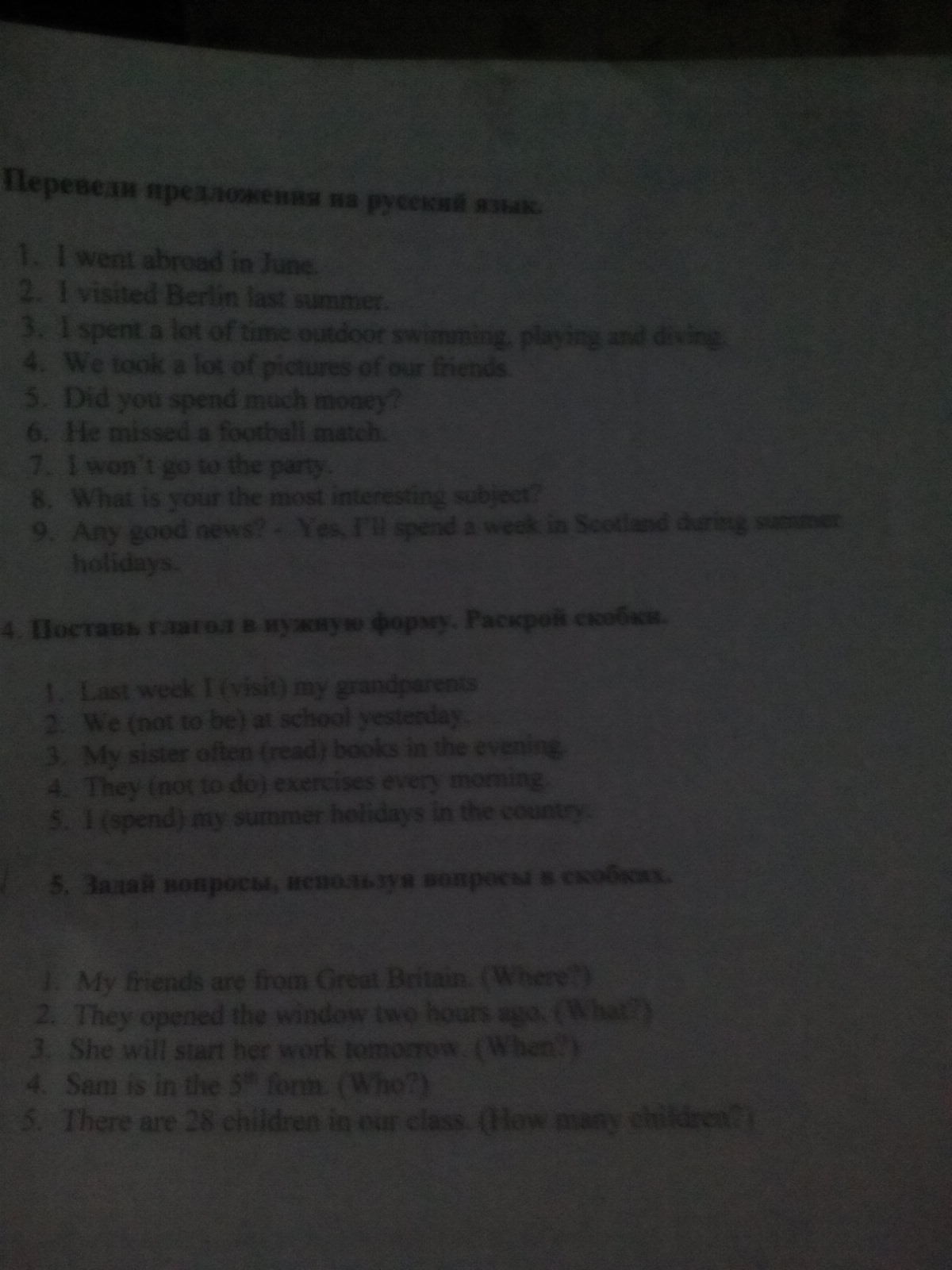 1. visited 2. werent 3. read (reading возможно) 4. didnt 5. spend