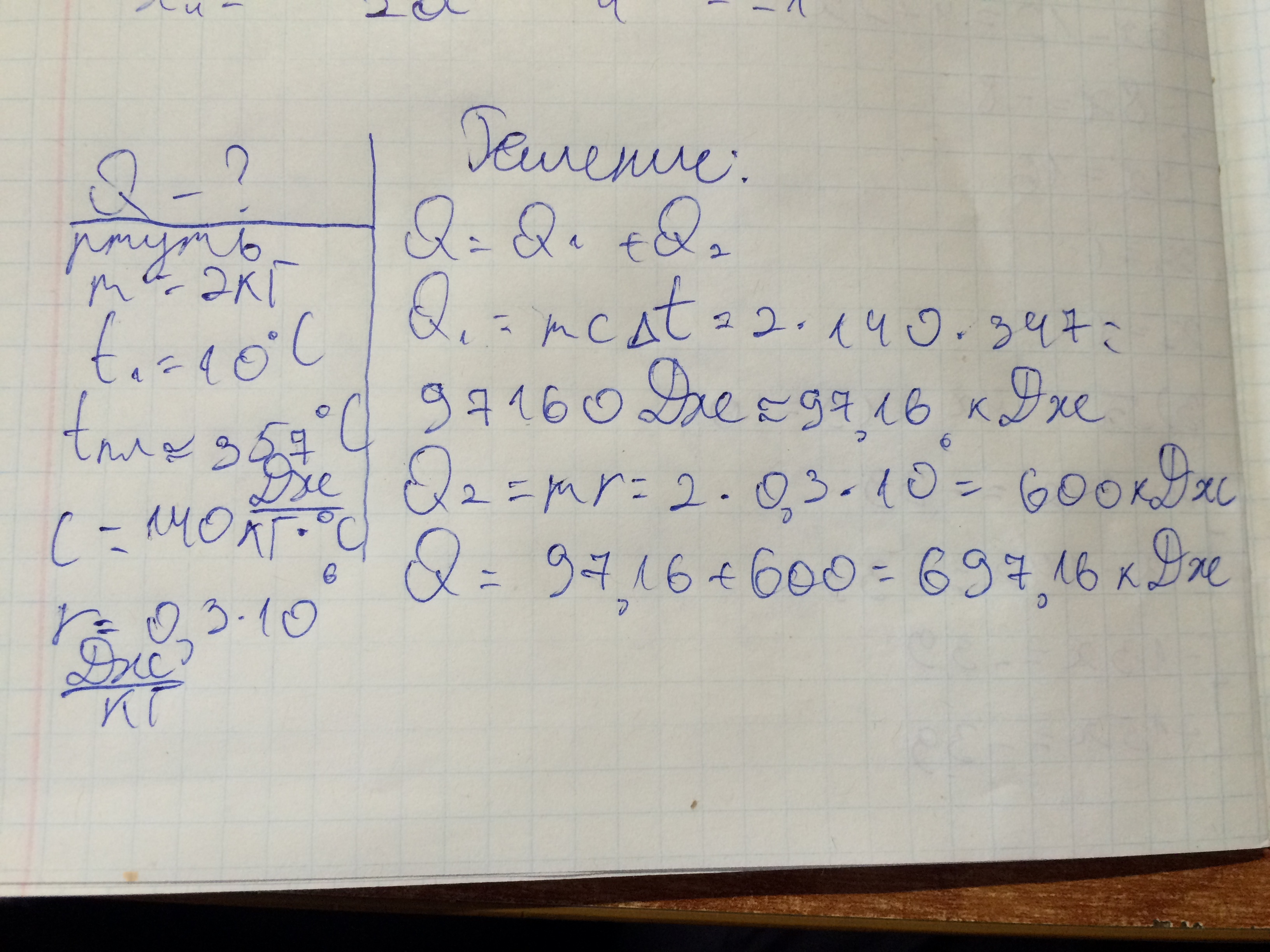 Ртуть при температуре 10°C кипетят найдите количество теплоты при полном парообразовании 2кг ртути.