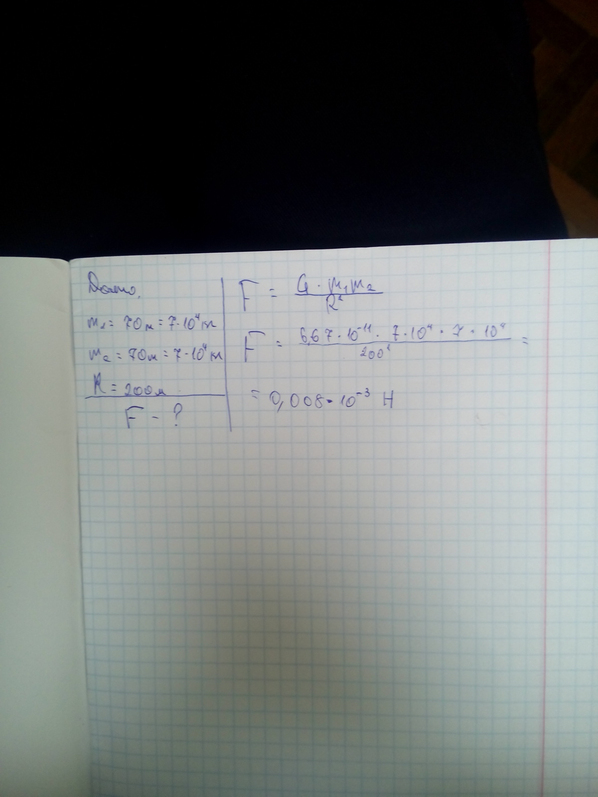 С какой силой притягивается два железнодорожных вагона массой 70 т каждый, если расстояние между ними равно 200 м ?