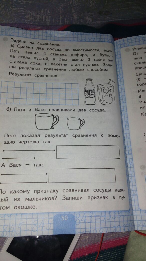 б) Петя сравнивал по вместимости,а Вася по количеству сосудов
