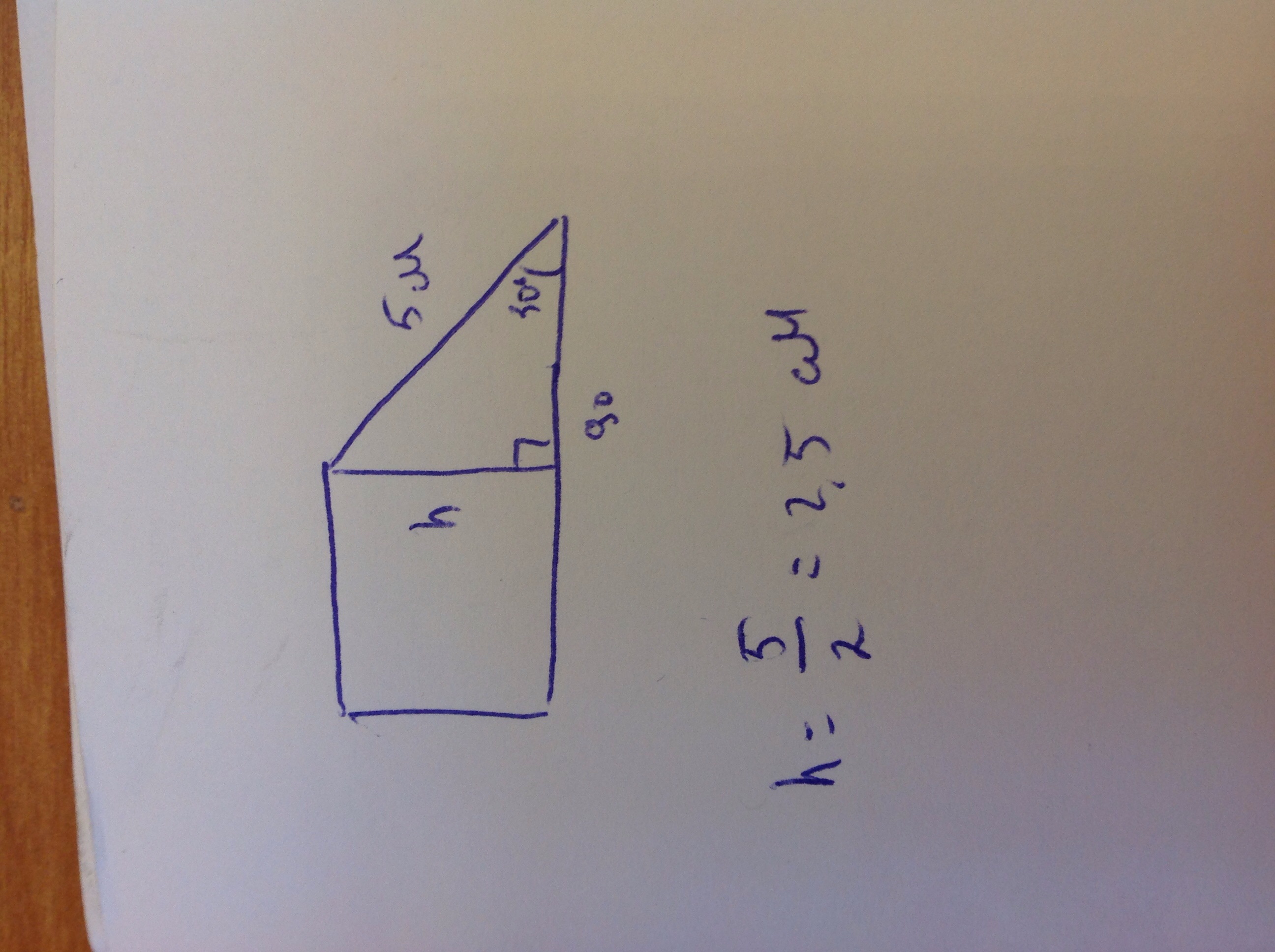 у прямоугольной трапеции большая боковая сторона равна 5 см. найдите высоту трапеции , если её острый угол равен 30°. пожалуйста помогите