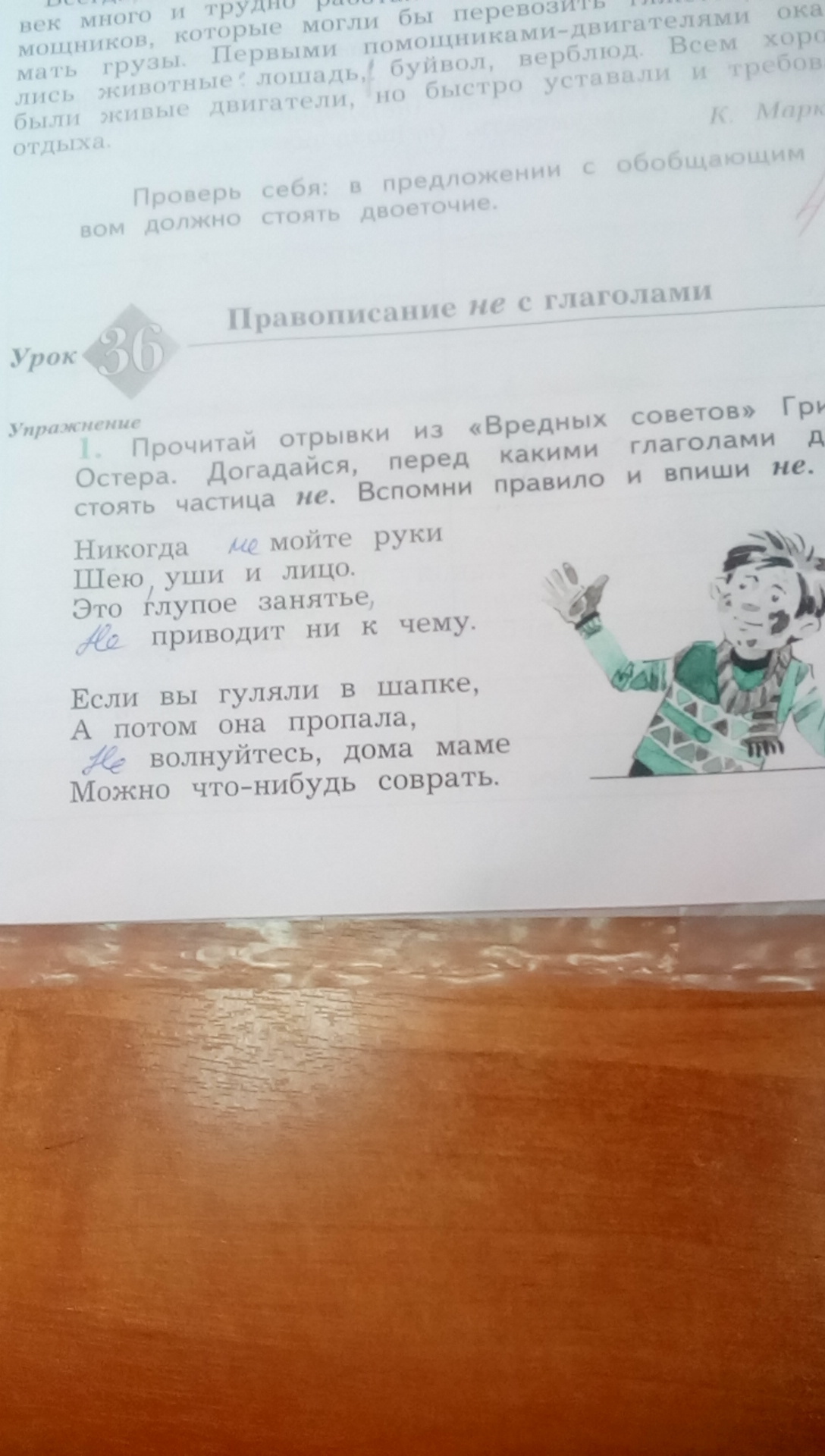 прочитай отрывки из "Вредных советов" Григория Остера догадайся перед какими глаголами должна стоять частица не вспомни правило и впиши не