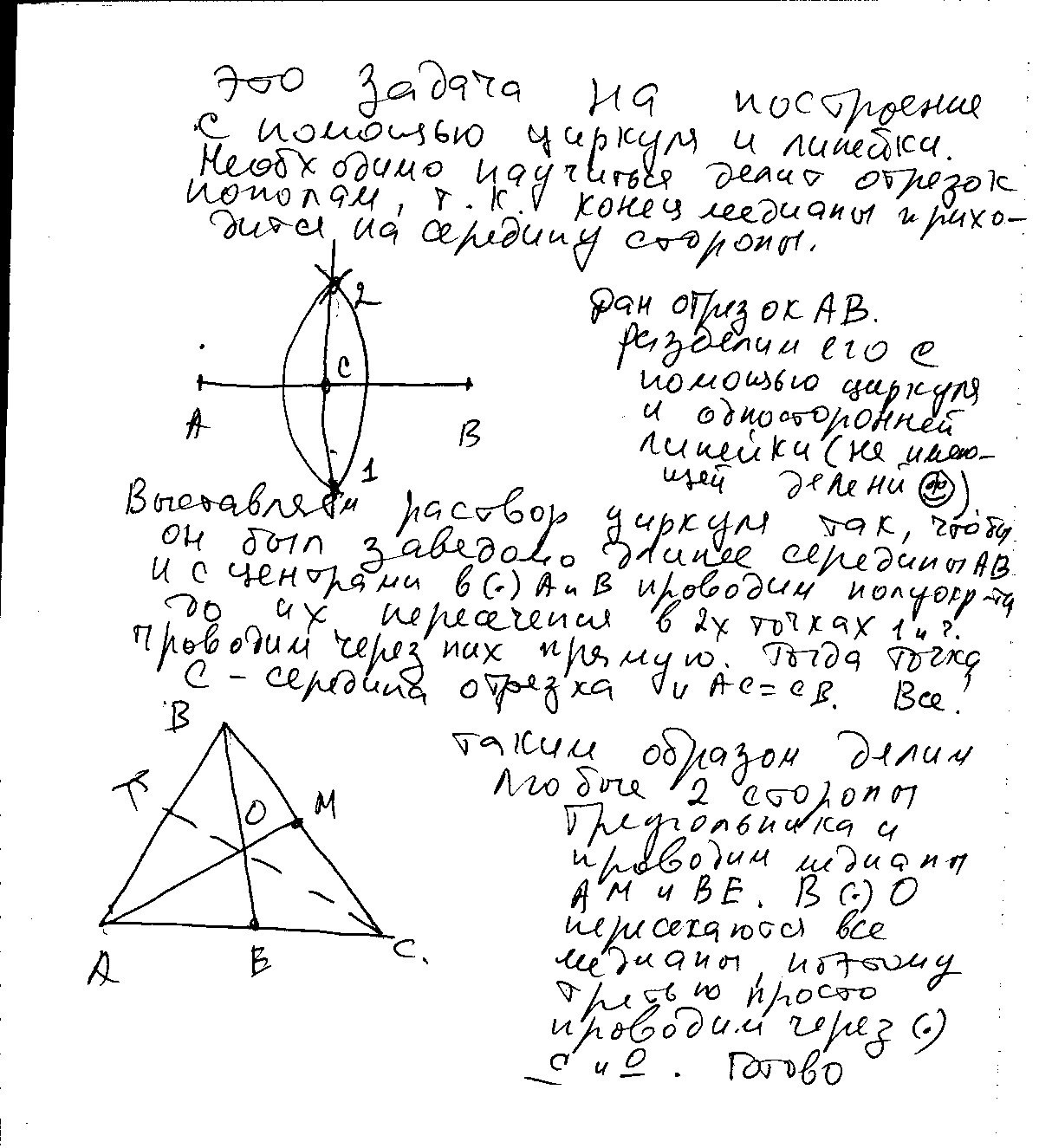 Эта задача на построение. Построения выполняются с помощью циркуля и односторонней (не имеющей делений) линейки.