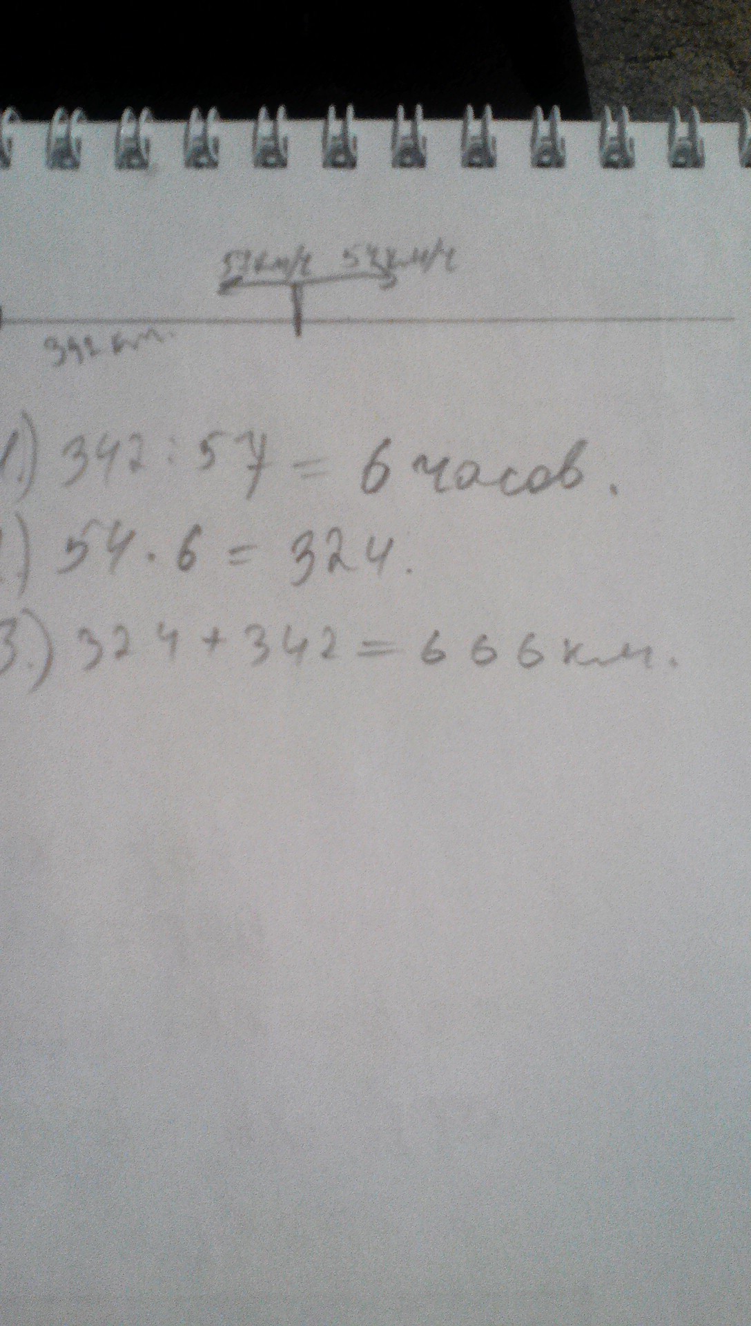как решить задачу?два поезда отошли одновременно от одной станции в противоположных направлениях со скоростями 57 километров в час 54 километров в час. первый из них проехал 342 километров. на каком расстоянии друг от друга в этом в этот момент находились поезда ?