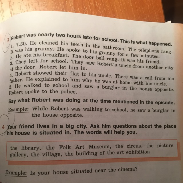 Your friend lives in a big city. Ask him questions about the place his house is situated in. The words will help you. Номер 4
