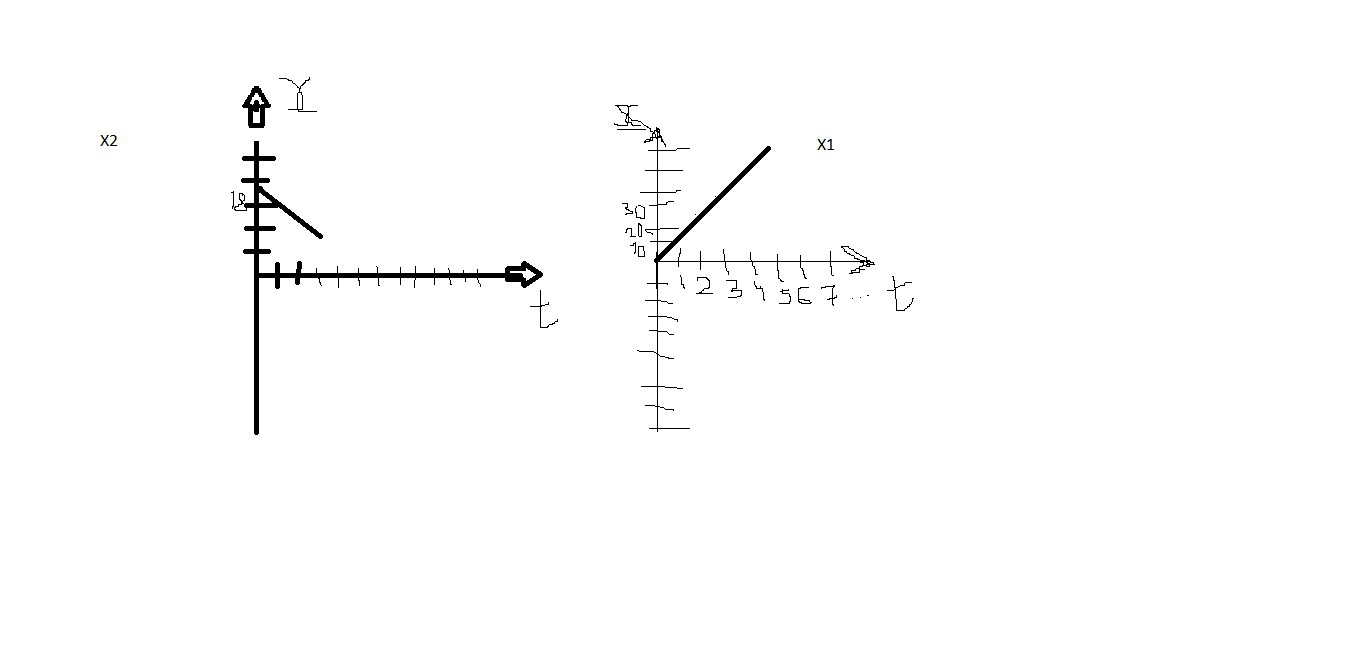 1-3) x1- равномерное, по оси оХ вправо, то есть возрастает, х2- равномерное, по оси оХ влево (убывает), но стартует с координаты хо=18. Модуль V(x1)=12 м/с., V(x2) =4м/с. Графики примерно так пойдут, сам красиво построй, если непонятно будет, то в комменты напиши