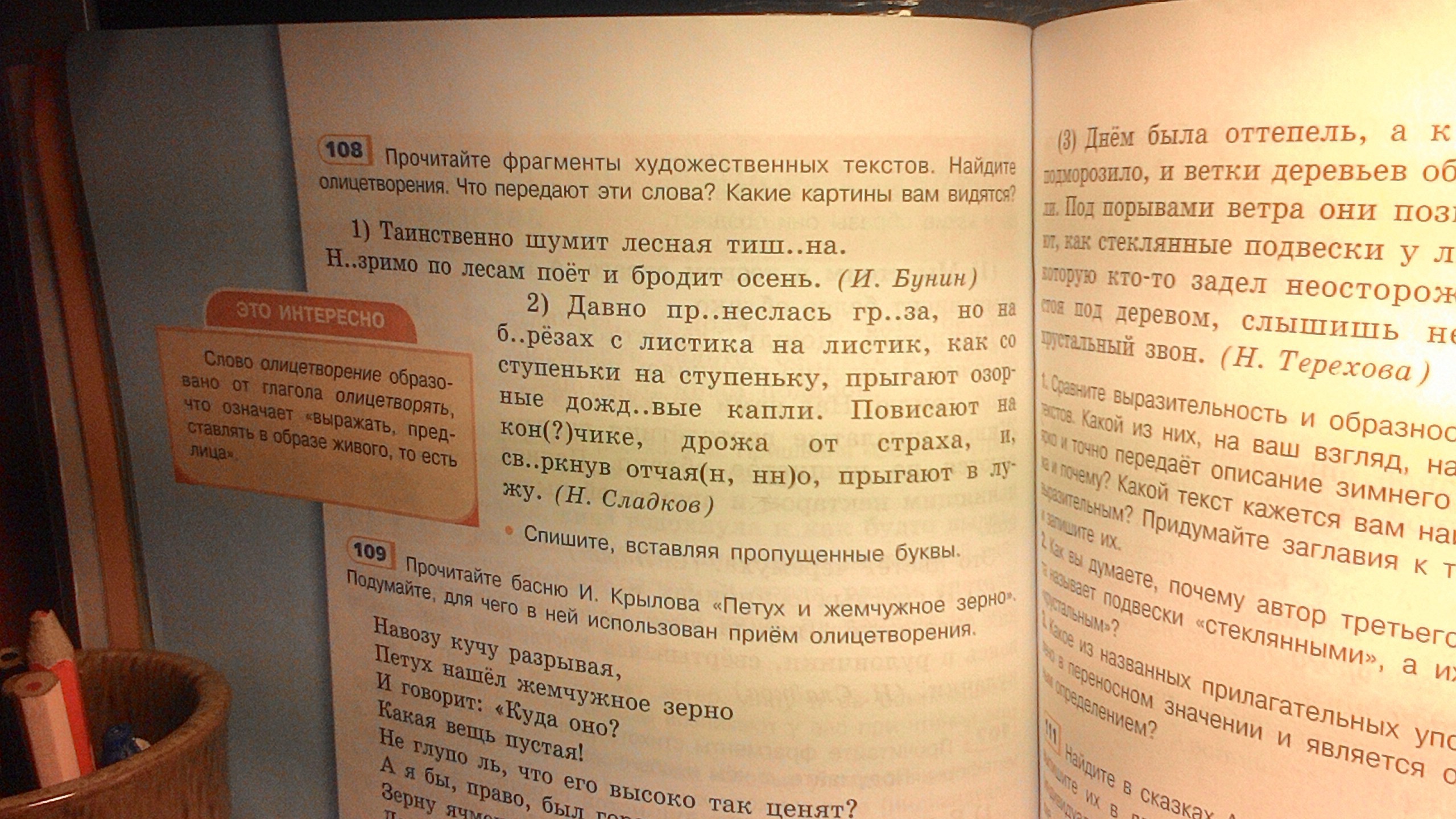 Незримо по лесам поет и бродит осень. Здесь олицетворяетмя осень.