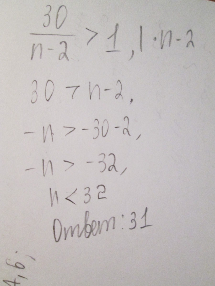 Последовательность Бn задана формулой Бn=30/n-2.сколько членов этой последовательности больше 1?