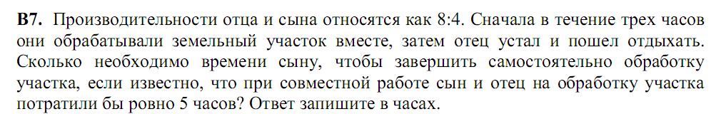 2х = 15 (часов) потребуется сыну для самостоятельной обработки участка