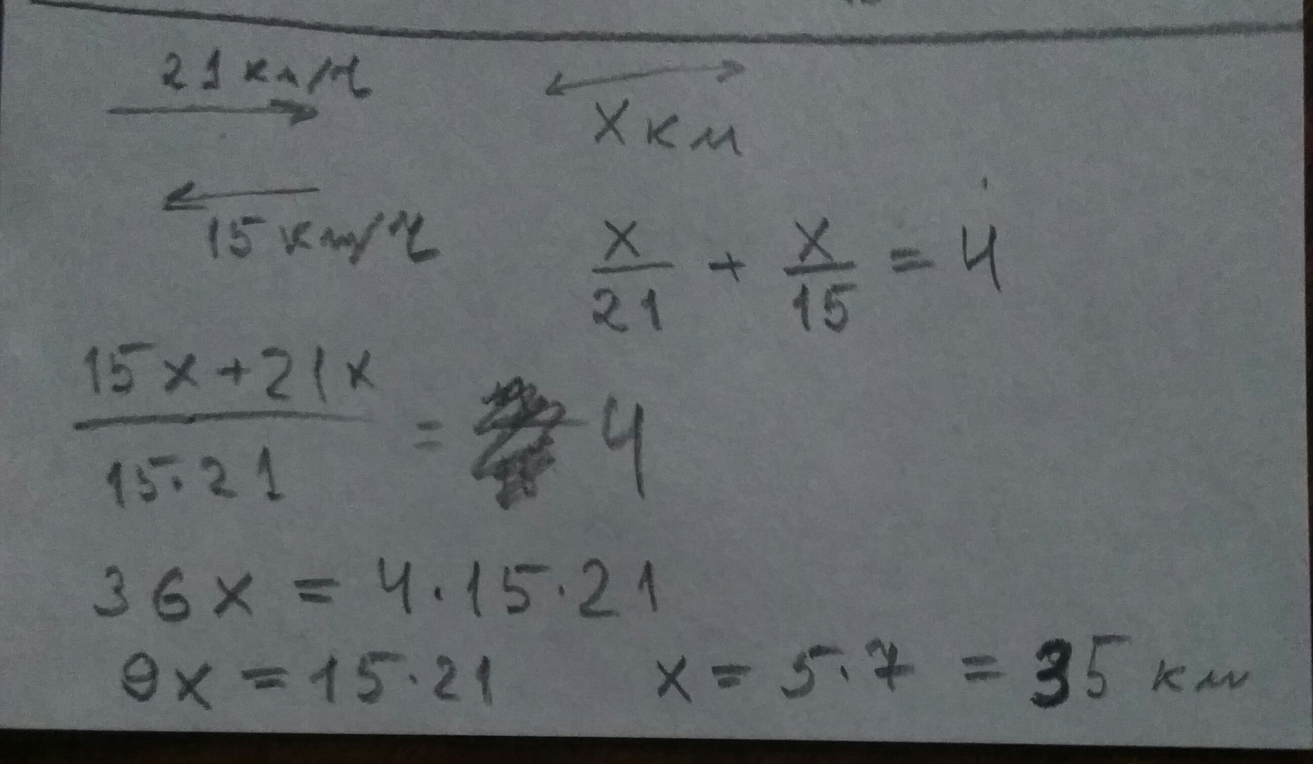 моторная лодка прошла по реке от одной станции до другой и обратно за 4 часа.Найдите расстояние между этими станциями,если скорость течения реки равна 3 км/с,а собственная скорость моторной лодки-18км/ч