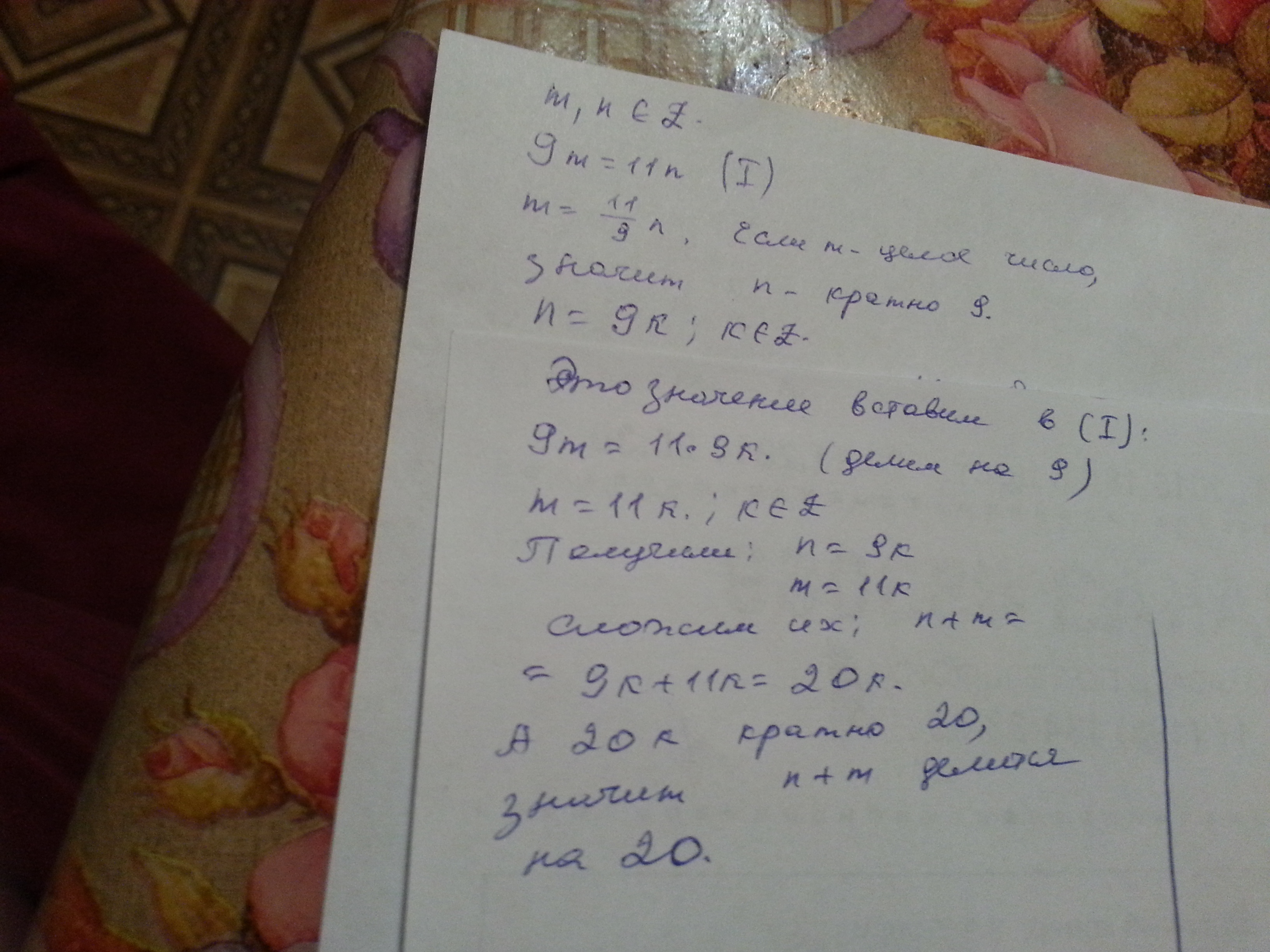 СРОЧНО!!!!!!! ДАЮ 20 БАЛЛОВ!!!!!! Если ответ не правильный то будет на него жалоба!!! целые числа m и n удовлетворительны равенству 9m=11n. Доказать: ( m+n )кратно 20
