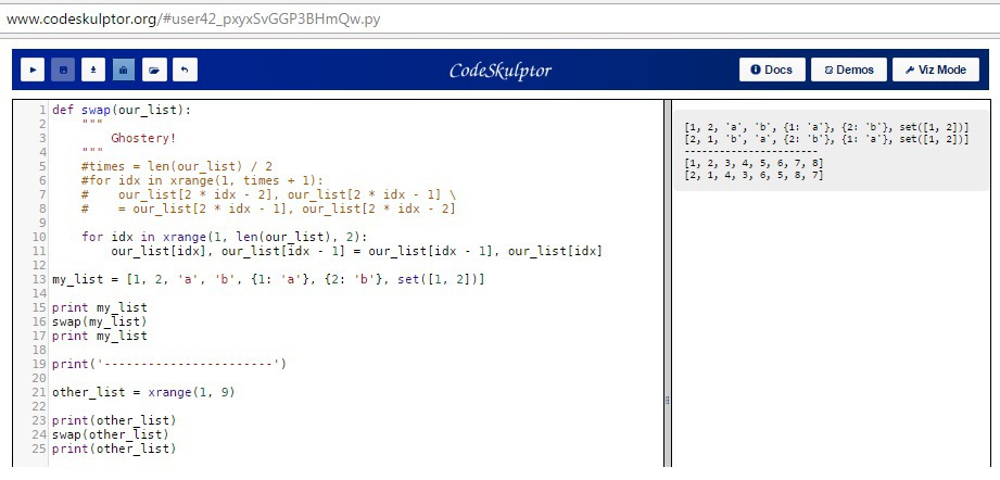 Переставьте соседние элементы списка (A[0] c A[1], A[2] c A[3] и т. д.). Если элементов нечетное число, то последний элемент остается на своем месте.