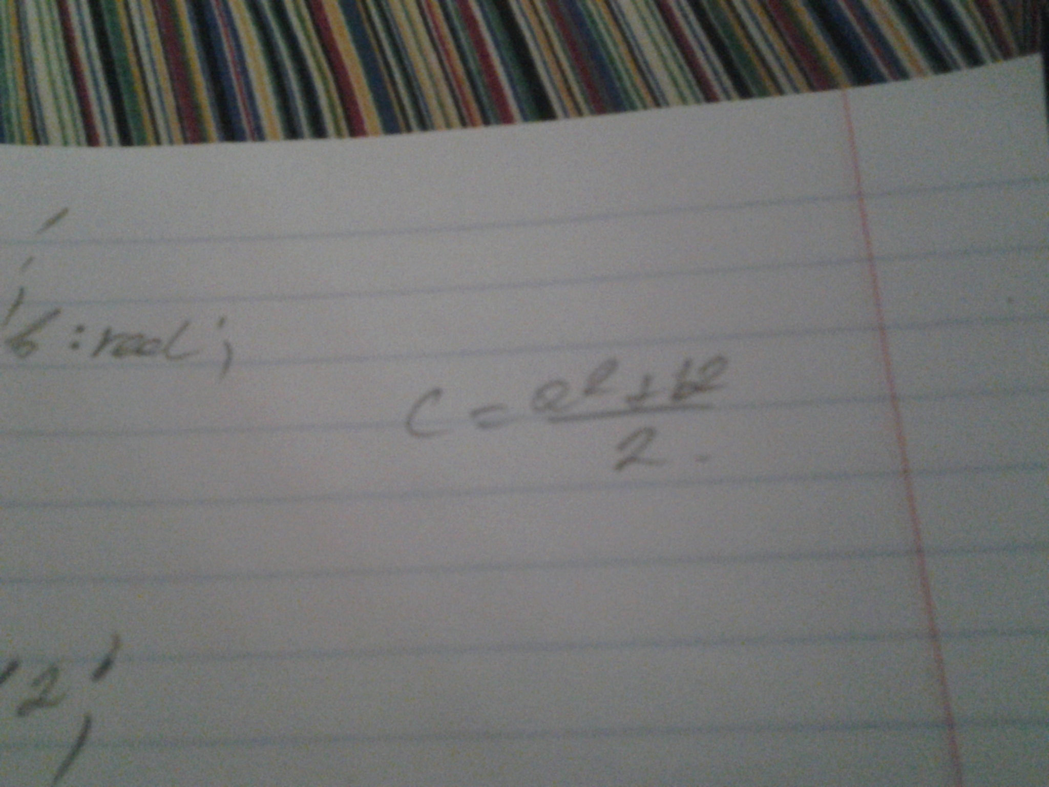 в начале программы естественно uses crt, var:c, a, b. а поcле begin c:=sqr(a)+sqr(b)/2 и потом если надо вывести: write(c)