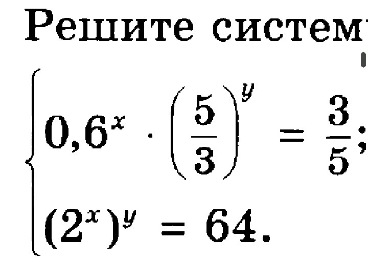 {0,6^x *(5/3)^y=3/5 {0,6^x *(0,6^(-1))^y=0,6 {0,6^x *0,6^(-y)=0,6^1