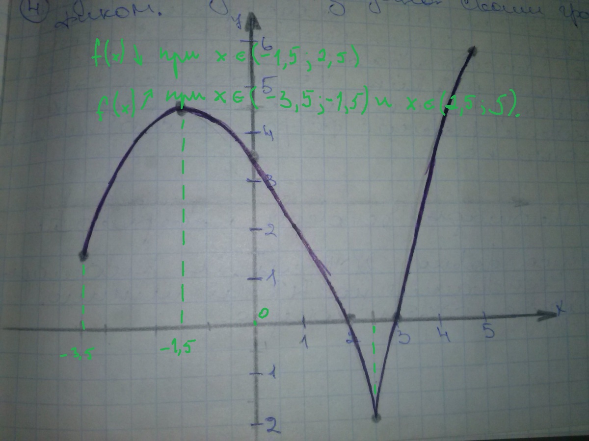 f'(x)>0 при x∈(-3,5 ; -1,5) и x∈(2,5 ; 5)