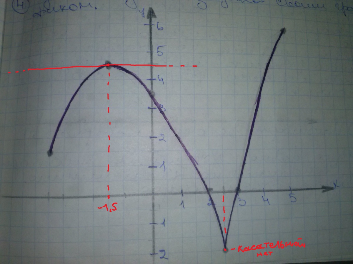 4) Найти такие точки не сложно. Ось абсцисс - горизонтальная ось. Проведя касательную к графику в точке x=-1,5 мы увидим, что она удовлетворяет условию.