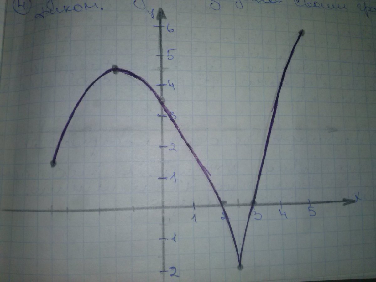 5) Значения функции смотрим по оси ординат. Наибольшее и наименьшее значения функции: ymin=-2; ymax=6.