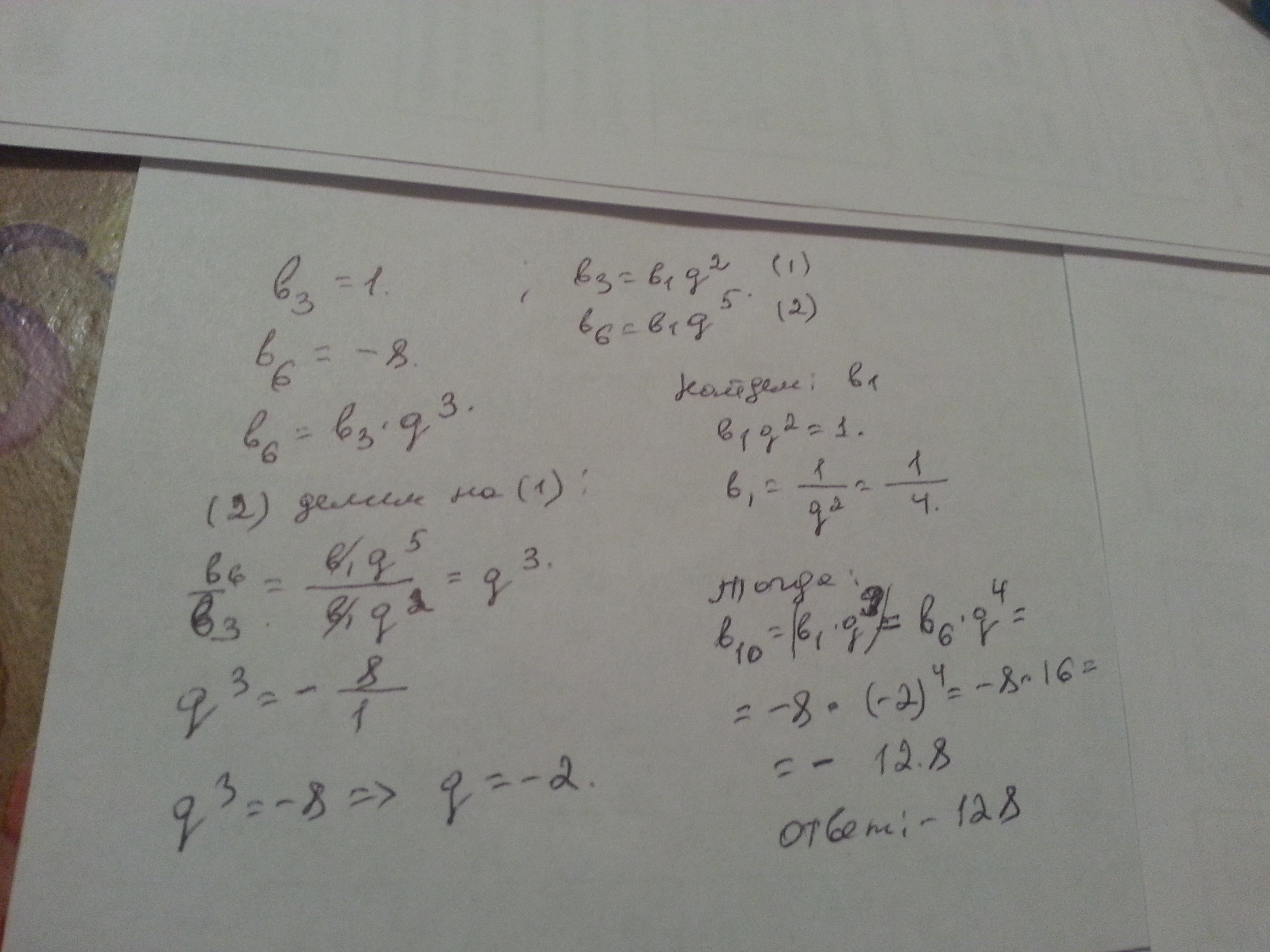 64*(-2)=-128 десятый