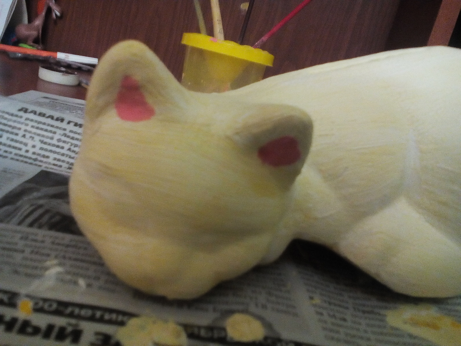 Посмотрите красила раза 3(перекрашивала) и теперь шелушится краска.Такой красивый котик,а пошли трещины,подскажите пожалуйста.Между ушей трещина не красиво :(