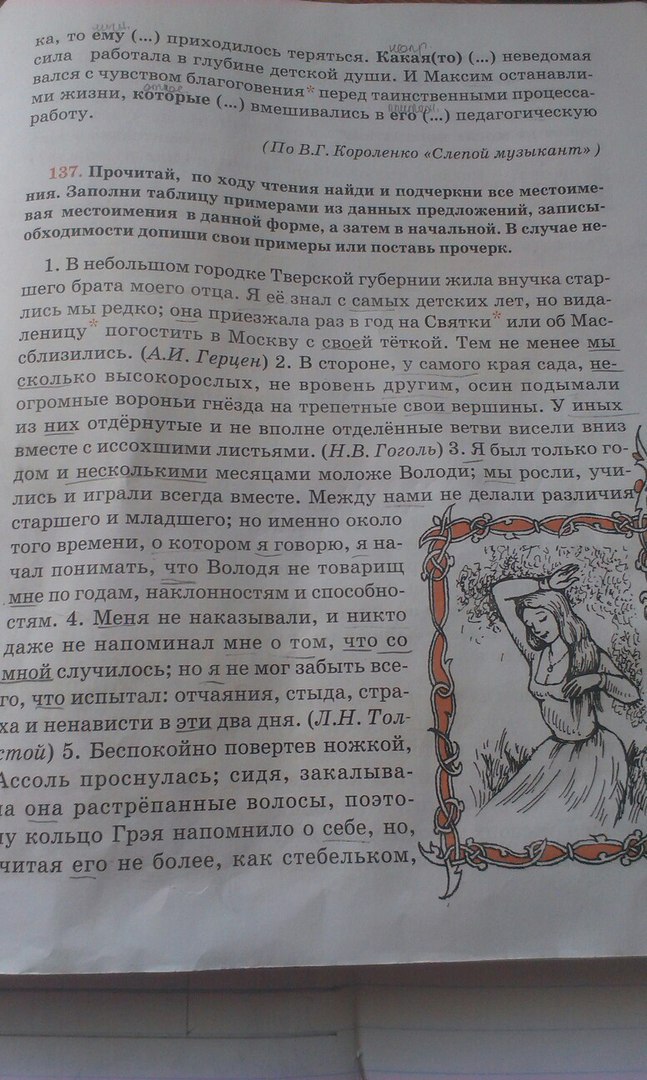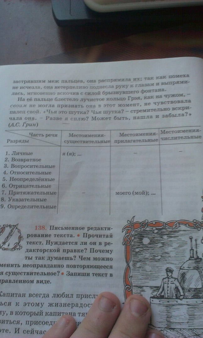 Местоимения: моего, я, её, мы, она, своей, несколько, другим, свои, них, иных, нами, того, который, что, мне, меня, никто, себе, его. Таблицы, о которой говорится в задании на фото нет.