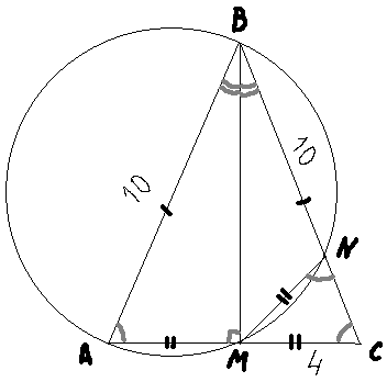 Треугольник МСN подобен треугольнику АВМ( по 2-ум углам, угол ВАС =углу МNС, а угол С общий.