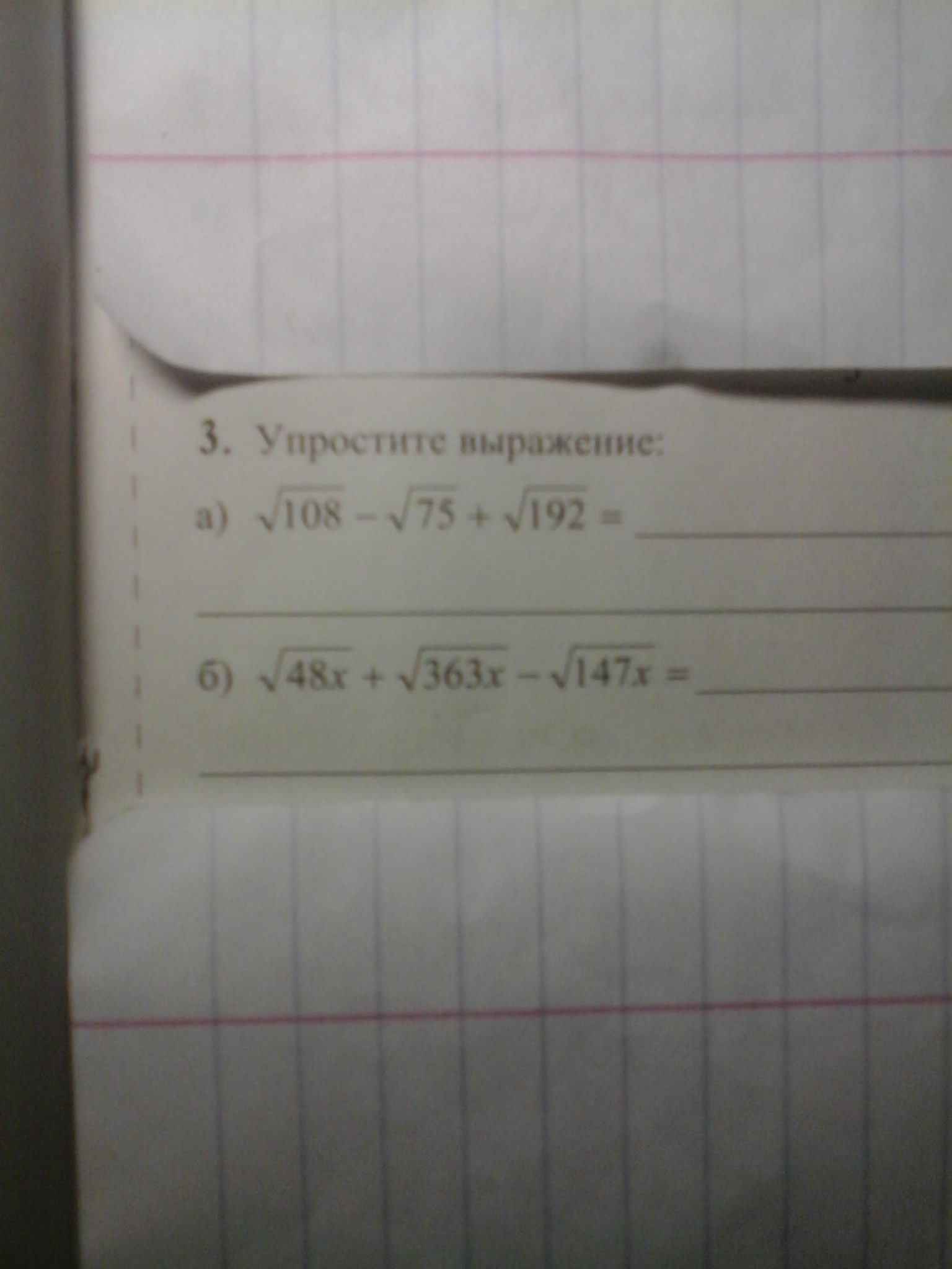 крн48х+крн363х-крн147х=крн(3*16х)+крн(3*121х)-крн(3*49х)=4крн3х+11крн3х-7крн3х=8крн3х