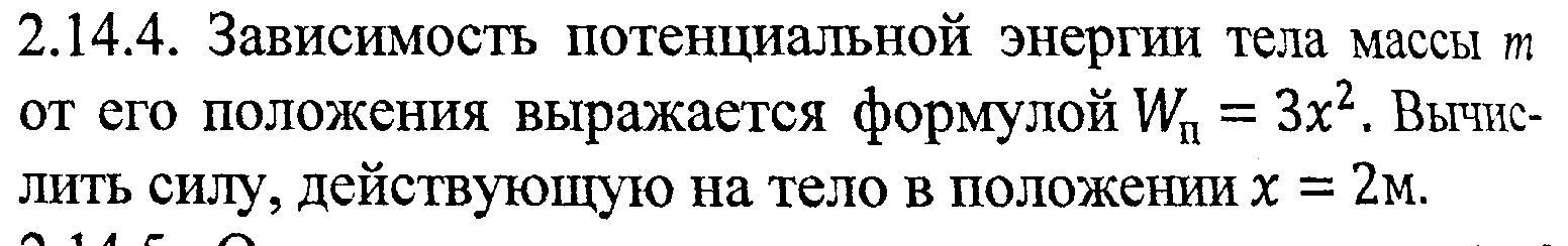 Зависимость потенциальной энергии тела массы m от его положения выражается формулой Wп=3x^{2}. Вычислить силу, действующую на тело в положении x=2м.