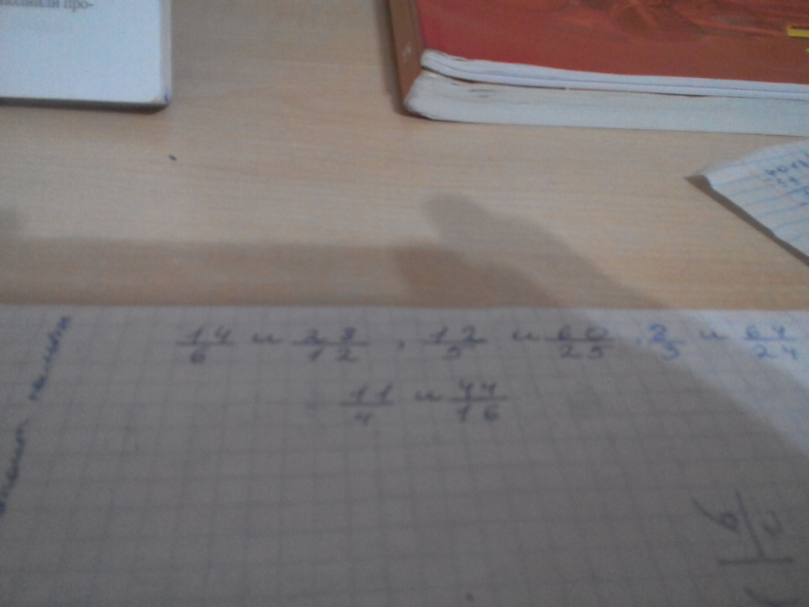 14/6=2 2/6 меньше 28/12=2 4/12; 12/5= 2 2/5 равно 60/25= 2 10/25; 8/3= 2 2/3равно 64/24= 2 16/ 24; 11/4=2 3/4 равно 44/16=2 12/16.