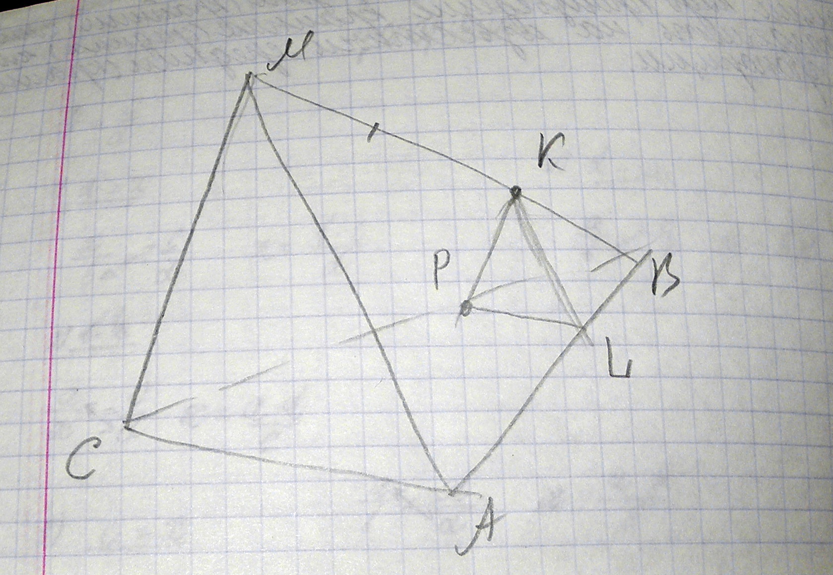 Ведем KL параллельно МА и КР, параллельно МС. Соединяем Р и L.