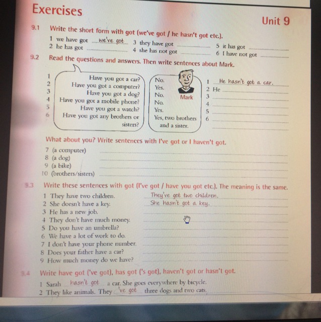 В заданиях 7-10 вы должны написать про себя (есть ли у вас компьютер, собака, велосипед, братья или сёстры)