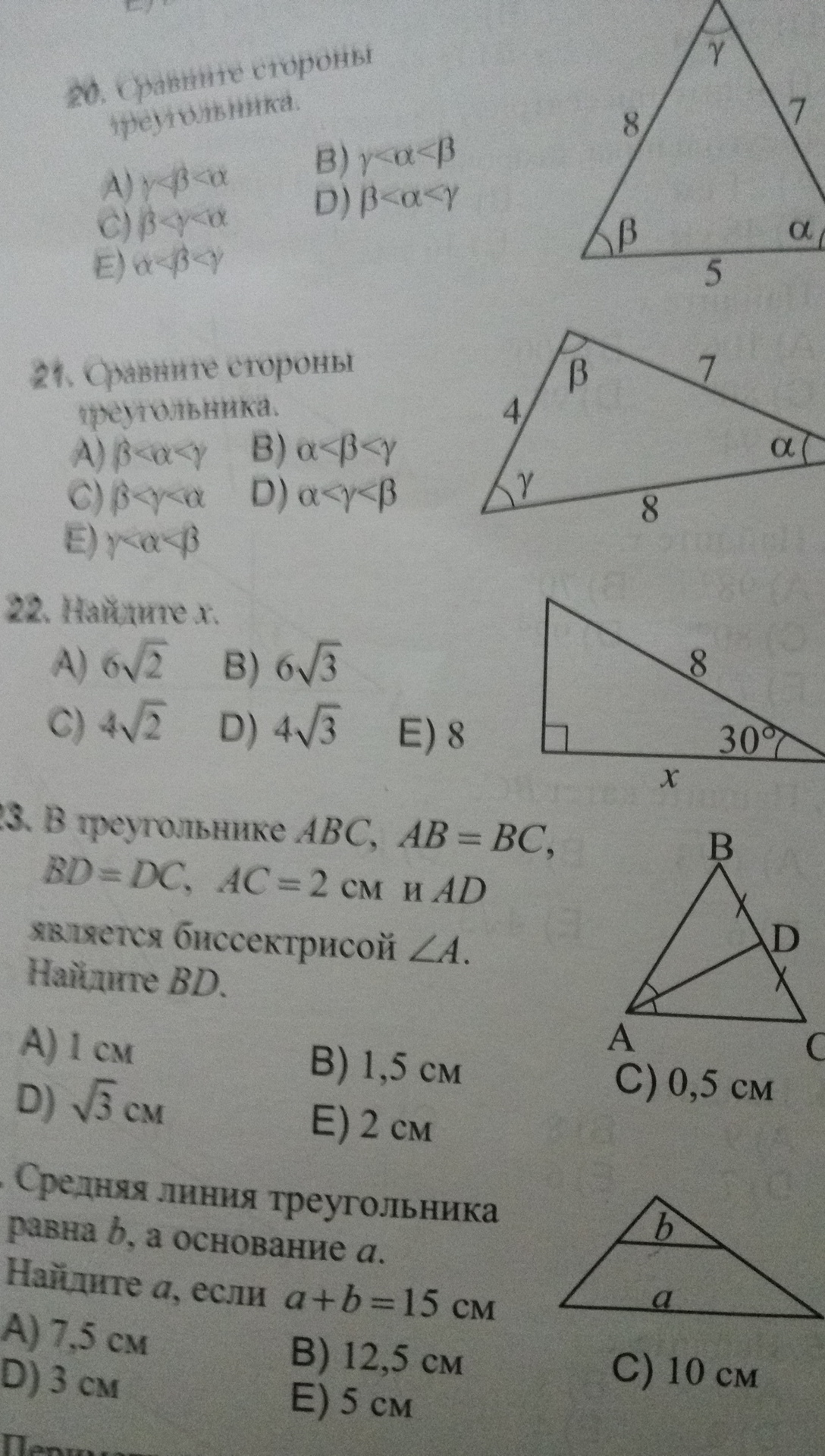 В прямоугольном треугольнике против угла 30 градусов лежит катет в два раза меньший гипотенузы.