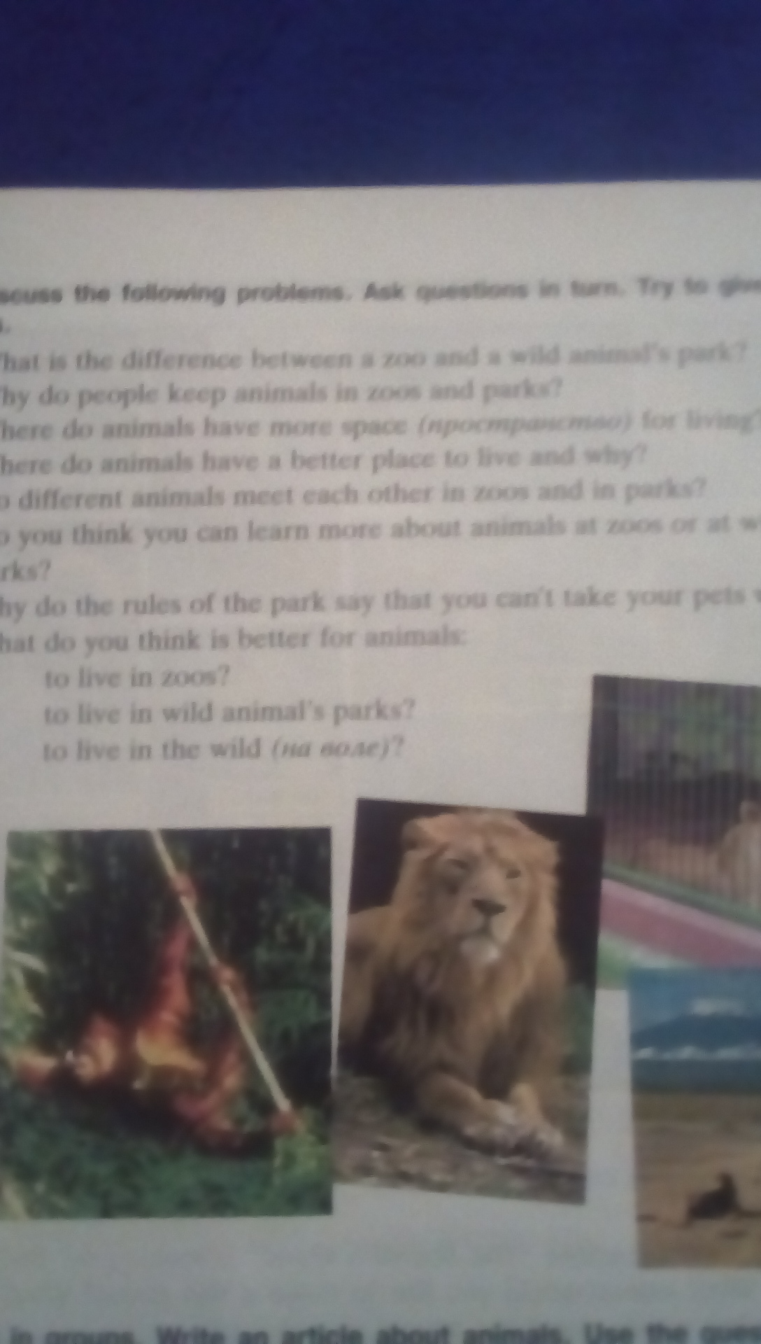 For animals it is good to live in wild, because no one controls them and they can live how they want. But living in wild park is better, because animals are under protect. But living in the zoo is bad for animals because they live in a cell and people who come to the zoo are taking some photos of them.